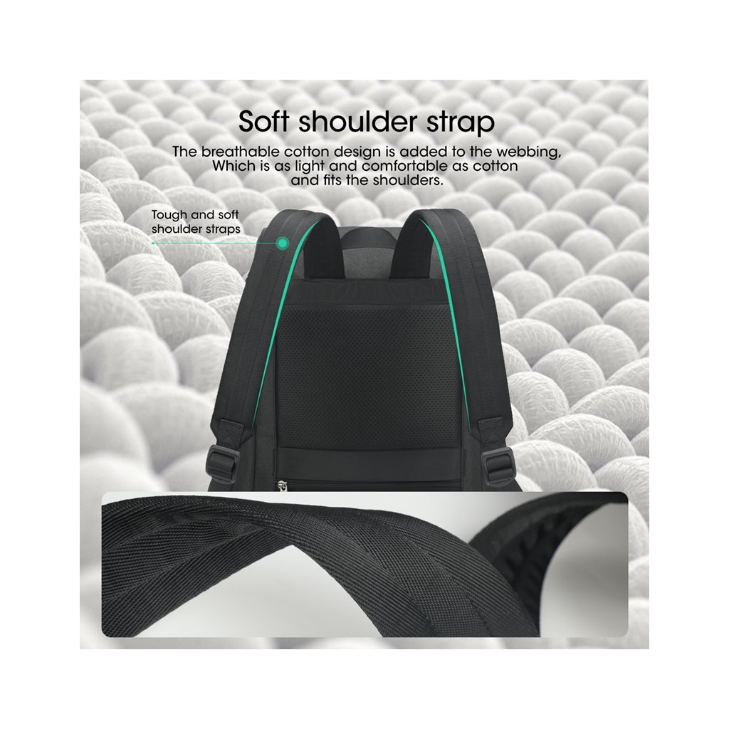 Batoh na notebook Tigernu nabízí hodně prostoru na transport vašeho pracovního zařízení nebo školních potřeb, a to i s dalším příslušenstvím. Bude se hodit na všechny příležitosti a uvnitř je více místa, než na první pohled čekáte. Jedna velká kapsa slouží k bezpečnému uložení počítače a k němu můžete přidat spoustu doplňků jako jsou powerbanky, nabíječky nebo sešity, klávesnice nebo myš. Po otevření kapsy budete mít k dispozici mnoho přihrádek. Počítač zajistíte pružnými popruhy, takže se nebude při přenášení batohu uvnitř hýbat. Na zádech pak najdete skrytou kapsu, kterou při nasazeném batohu na zádech nikdo neuvidí.