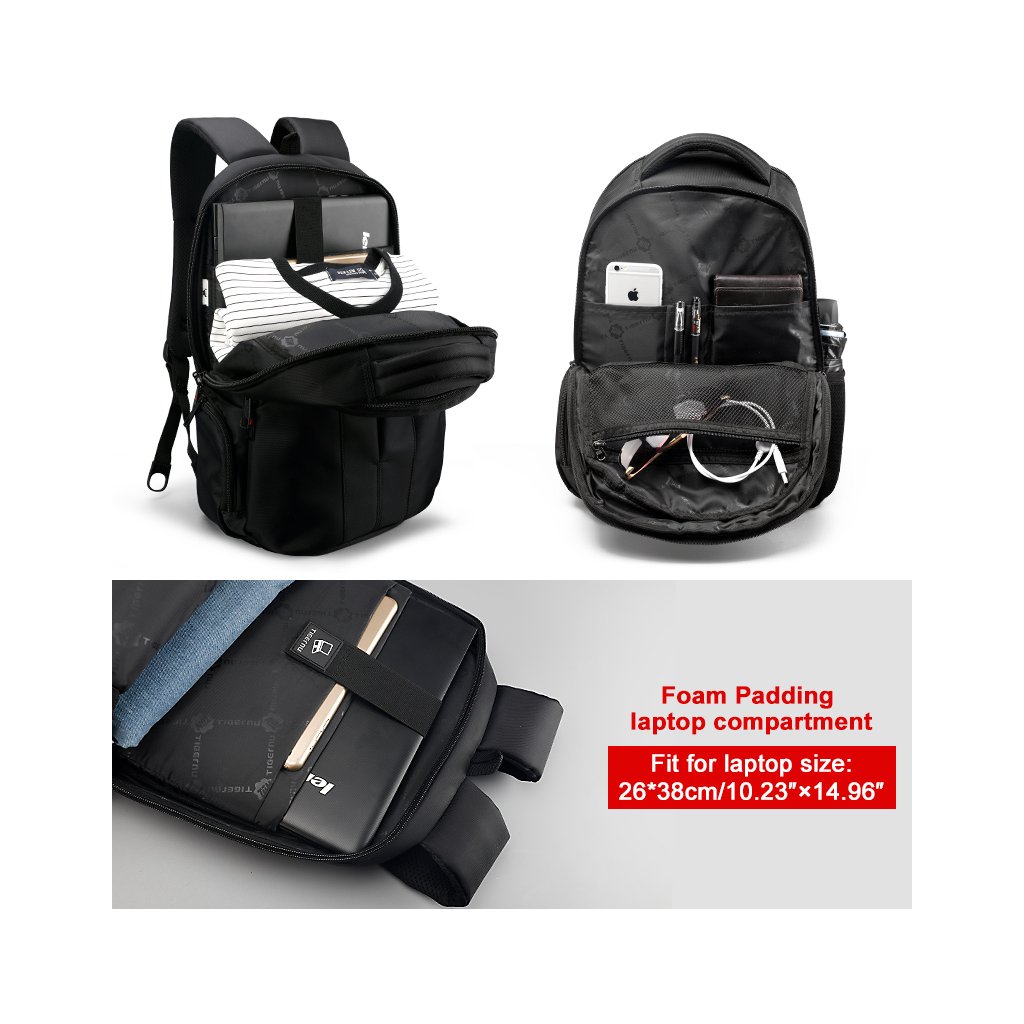 Batoh na notebook Tigernu nabízí dostatek prostoru na transport vašeho pracovního zařízení s potřebným příslušenstvím. Šikovně řešený prostor slouží k bezpečnému uložení počítače do zadní části, kde je uchycen ještě popruhem na suchý zip. K němu vměstnáte například i tablet, sešity a další příslušenství jako třeba powerbanky, nabíječky nebo kabely. Přední kapsa je určena pro malé předměty, které rychle z batohu vyndáte. Obsahuje i síťovanou přihrádku.