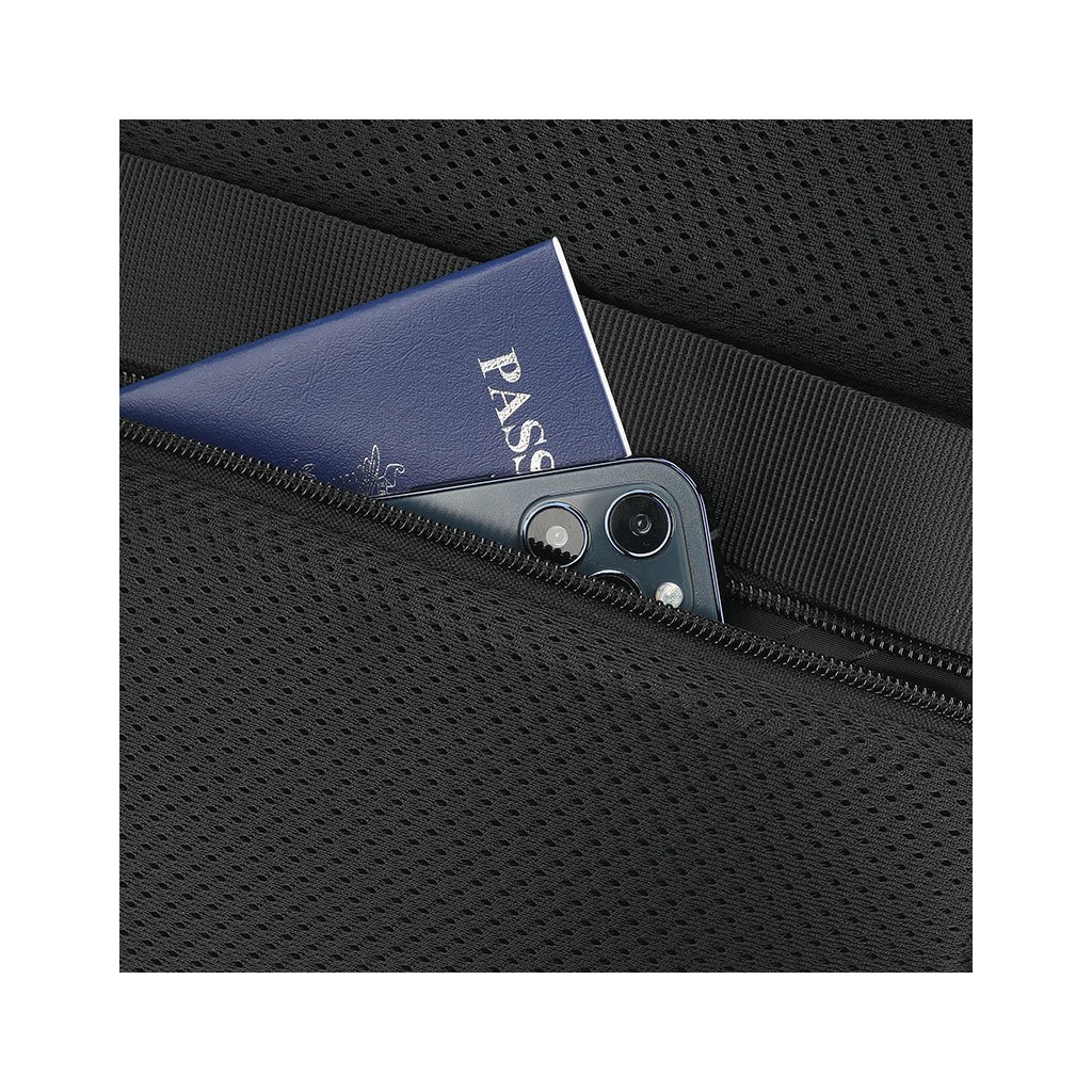 Odolný batoh nerozhodí ani vydatný déšť. Vnější látka obsahuje speciální voděodolnou vrstvu 290T. Záda a vnitřní část popruhů je zase potažena prodyšnou síťovinou, která bude odvětrávat teplo v parných dnech při nošení. Na hlavní kapsu se díky dvojitým jezdcům zipu dá připnout bezpečnostní TSA zámek.