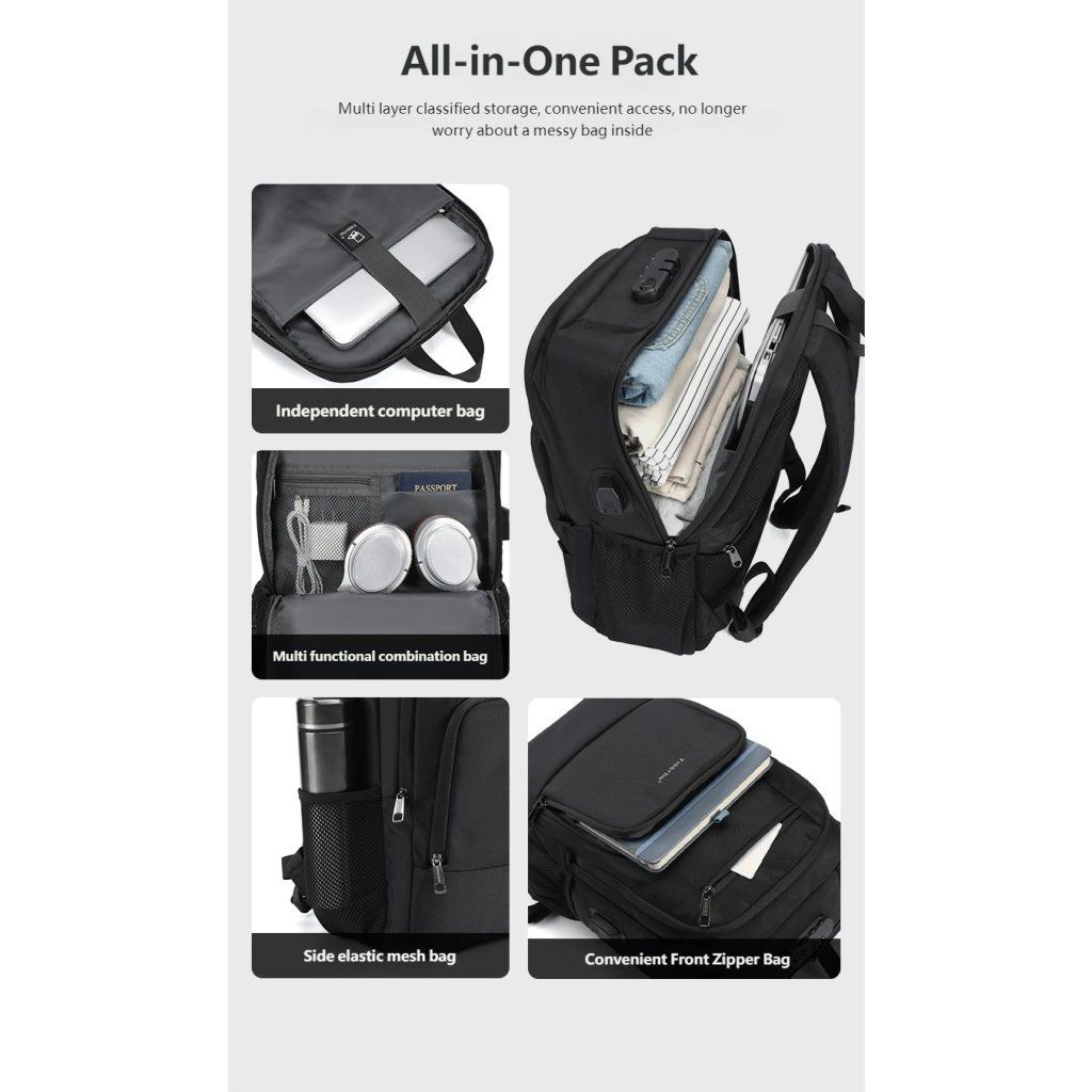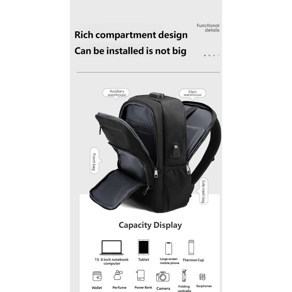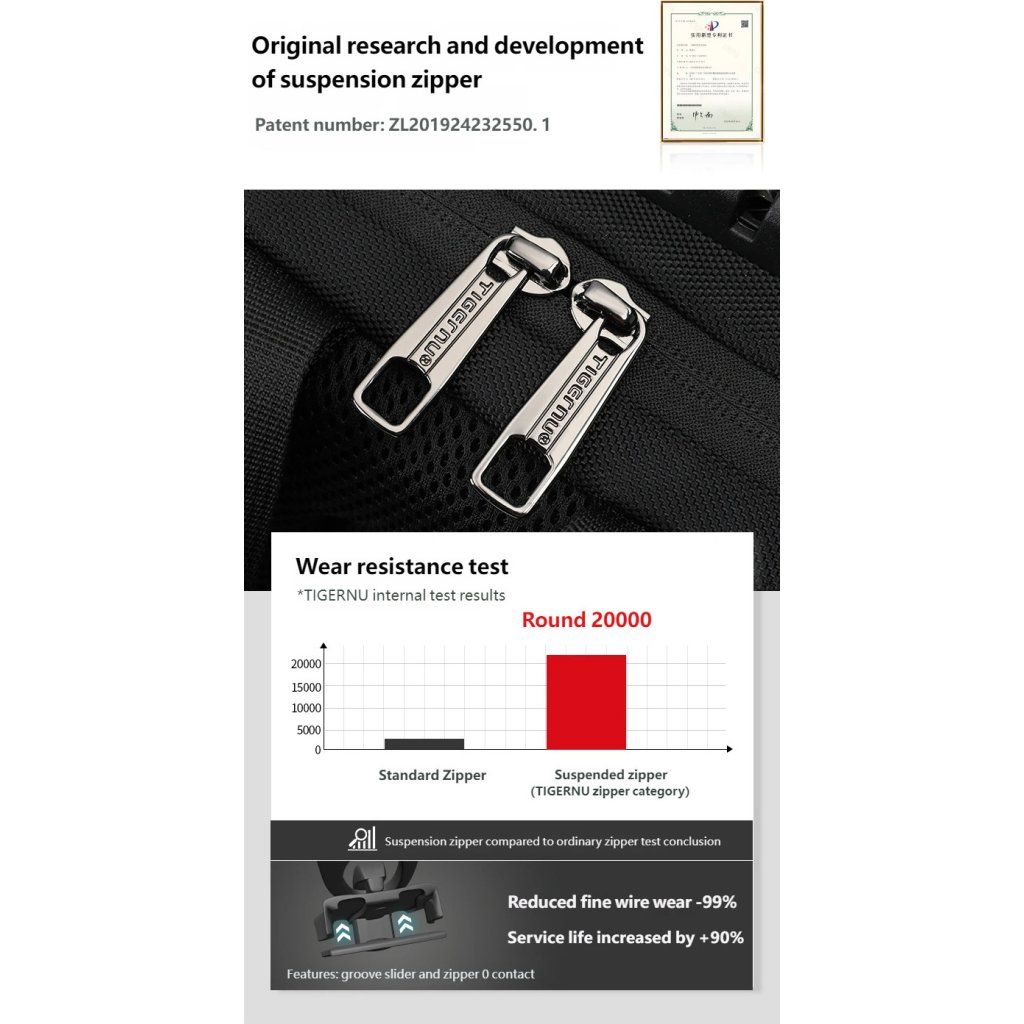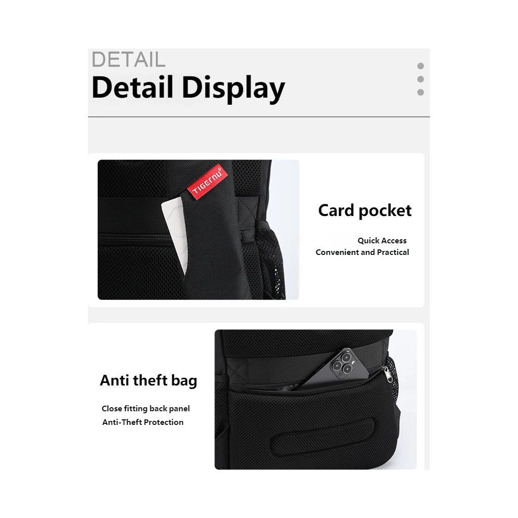 Batoh Tigernu je vynikající volbou, jak si uložit na cesty všechny své věci. Notebook je bezpečně umístěn v zadní části batohu v největší kapse. K němu můžete přihodit velká sluchátka, něco na čtení a další věci, které se vám budou na cestu hodit. Vpředu je pak menší kapsa, která má v sobě několik přihrádek a je tak vhodná pro uložení psacích potřeb, cestovních dokladů a jiných drobnějších věcí. Pod ní je ještě jedna menší, kam umístíte třeba menší tablet nebo telefon.