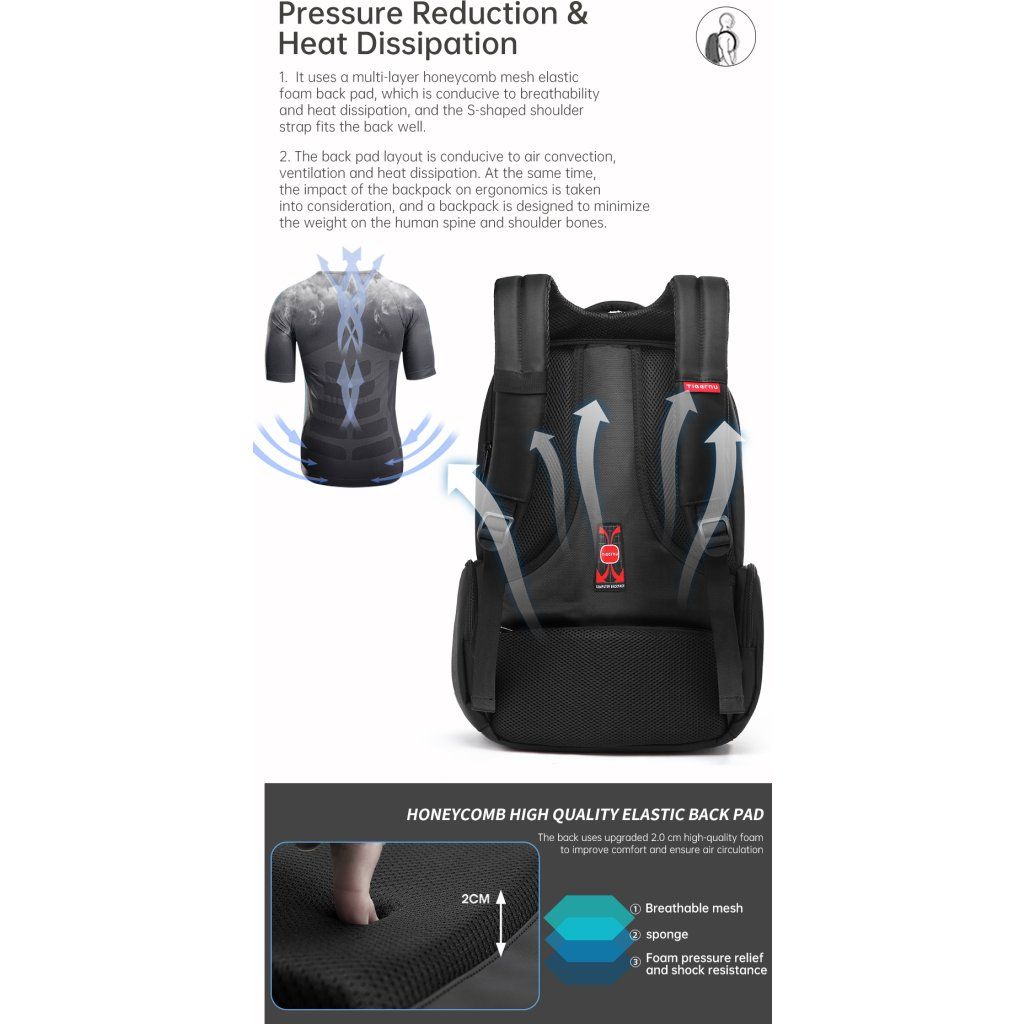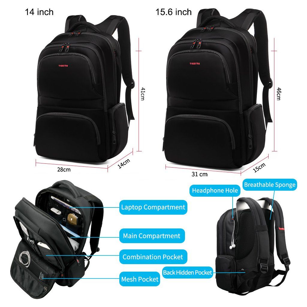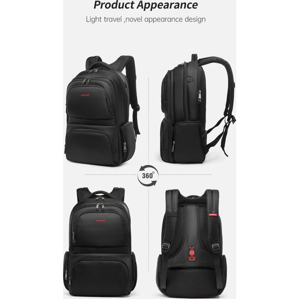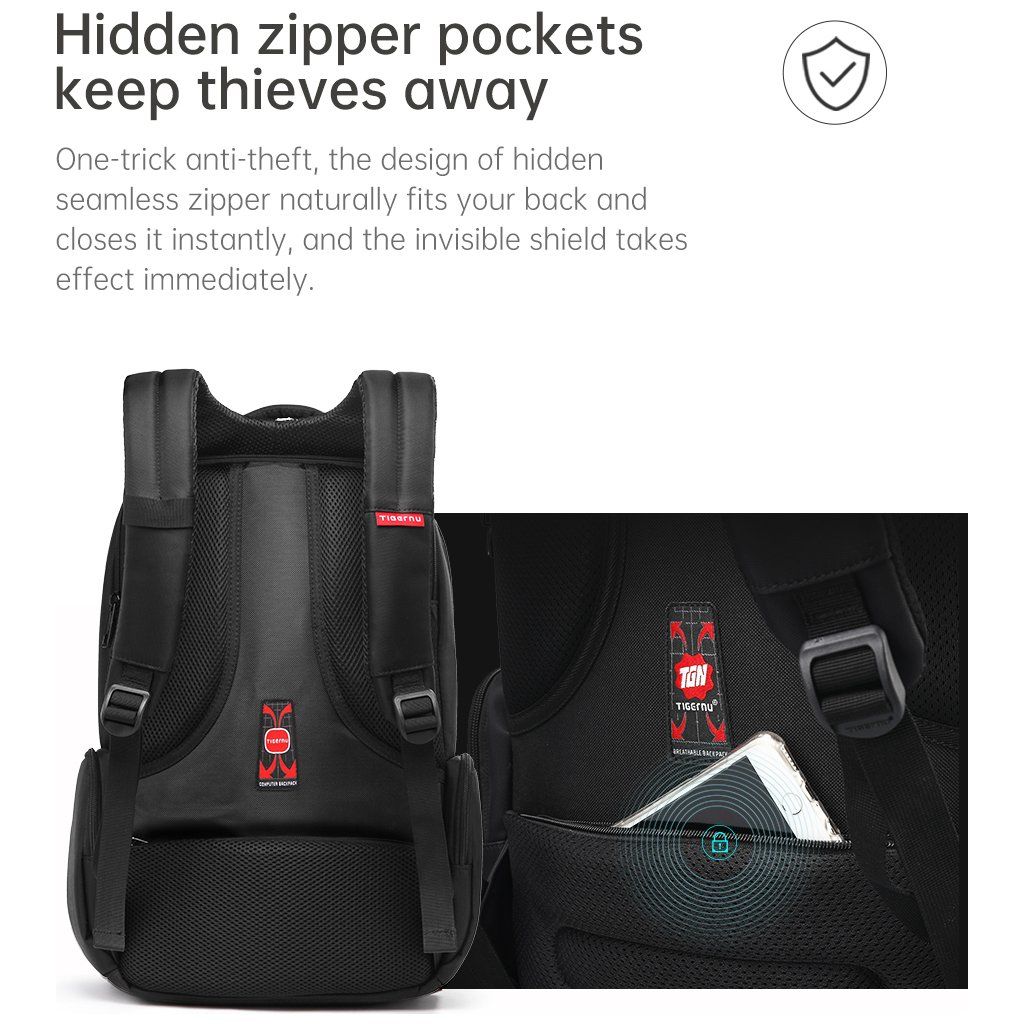 Batoh pro notebook Tigernu nabízí dostatek prostoru na transport vašeho pracovního zařízení s potřebným příslušenstvím. Šikovně řešený prostor slouží k bezpečnému uložení počítače do zadní části. Do prostřední kapsy se vejde mnoho příslušenství jako jsou powerbanky, kabely nebo nabíječky. Přední kapsa je určena pro malé předměty, které rychle z batohu vyndáte. Obsahuje i síťovanou přihrádku.