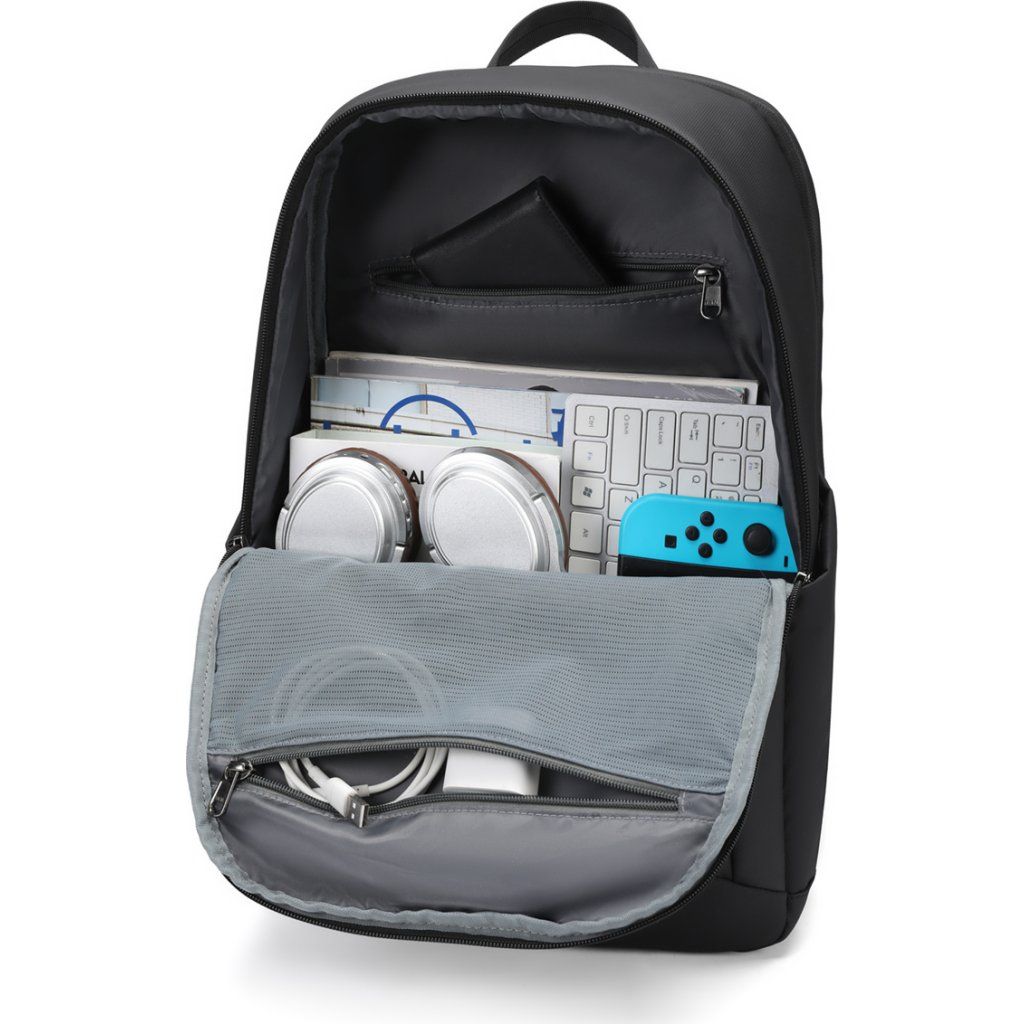 Do batohu vložíte notebook o velikosti až 15,6 palců. Kromě něj si můžete bezpečně uložit sešity, telefon, peněženku a další příslušenství jako je například myš nebo powerbanka.