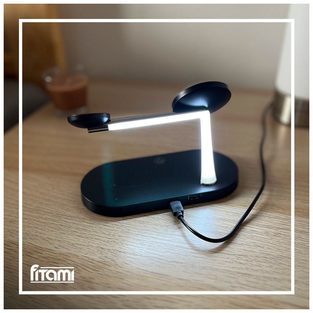 Bezdrátová nabíječka 3v1 s lampičkou - Černá