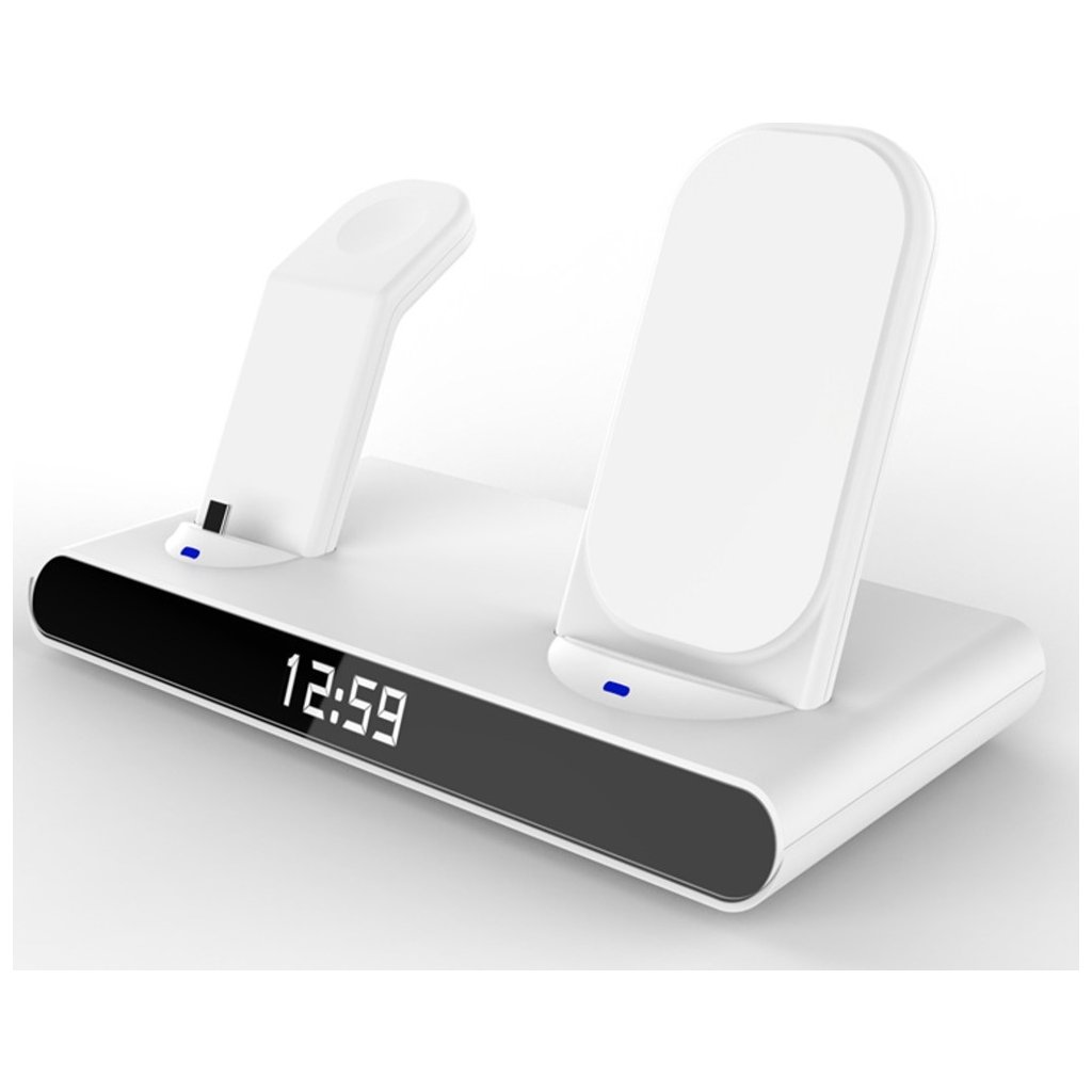 Bezdrátová nabíječka s budíkem 3v1 - Bílá