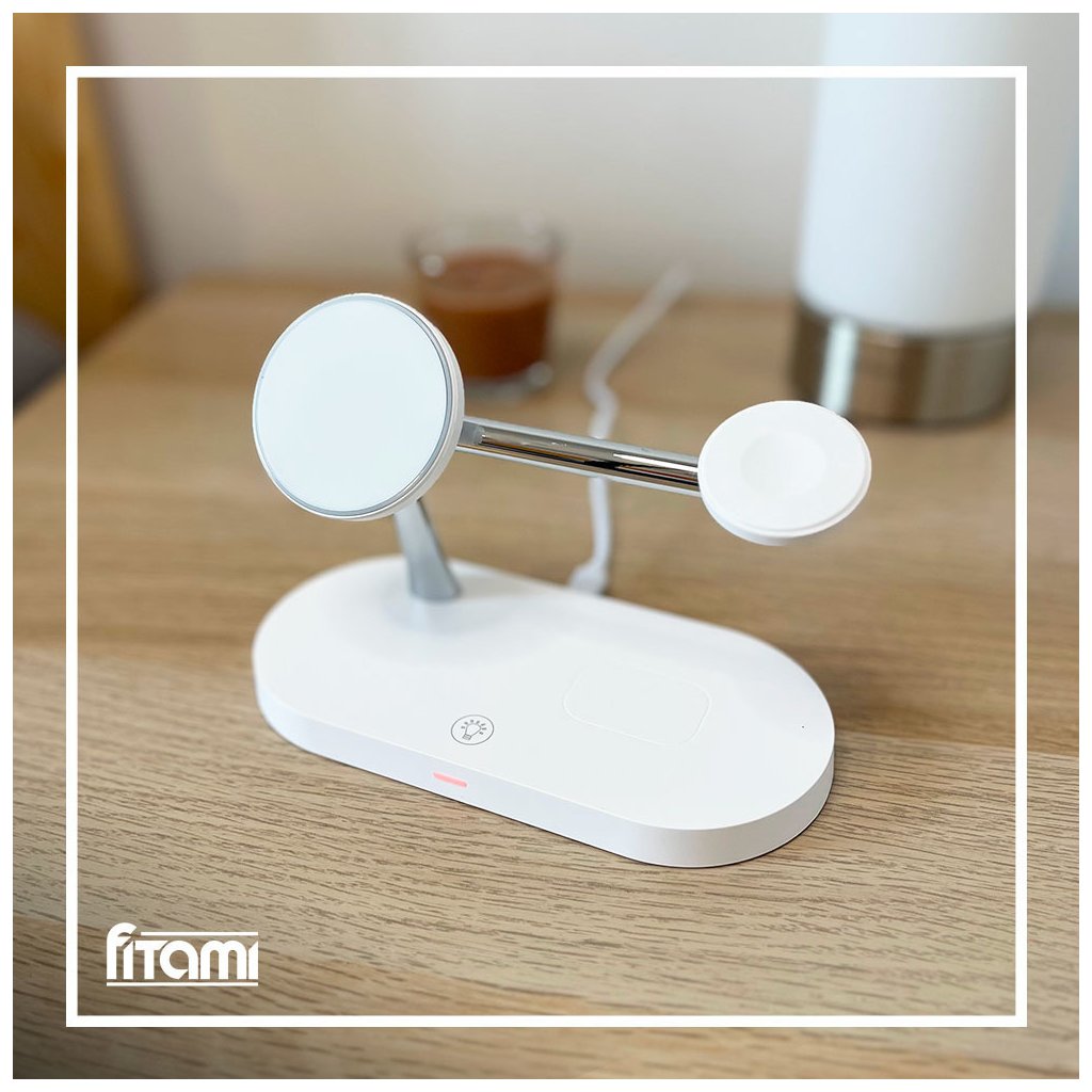 Bezdrátová nabíječka s lampičkou 3v1 - Bílá