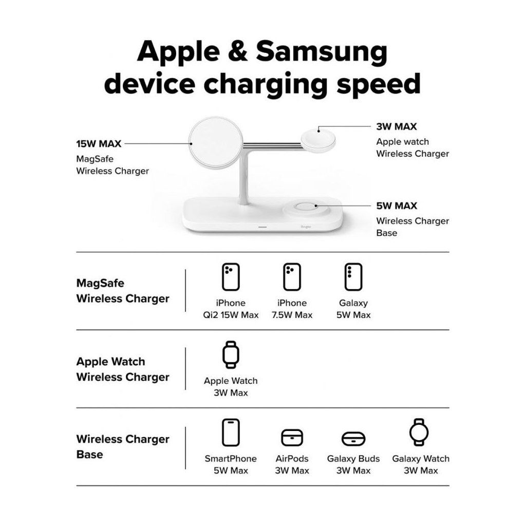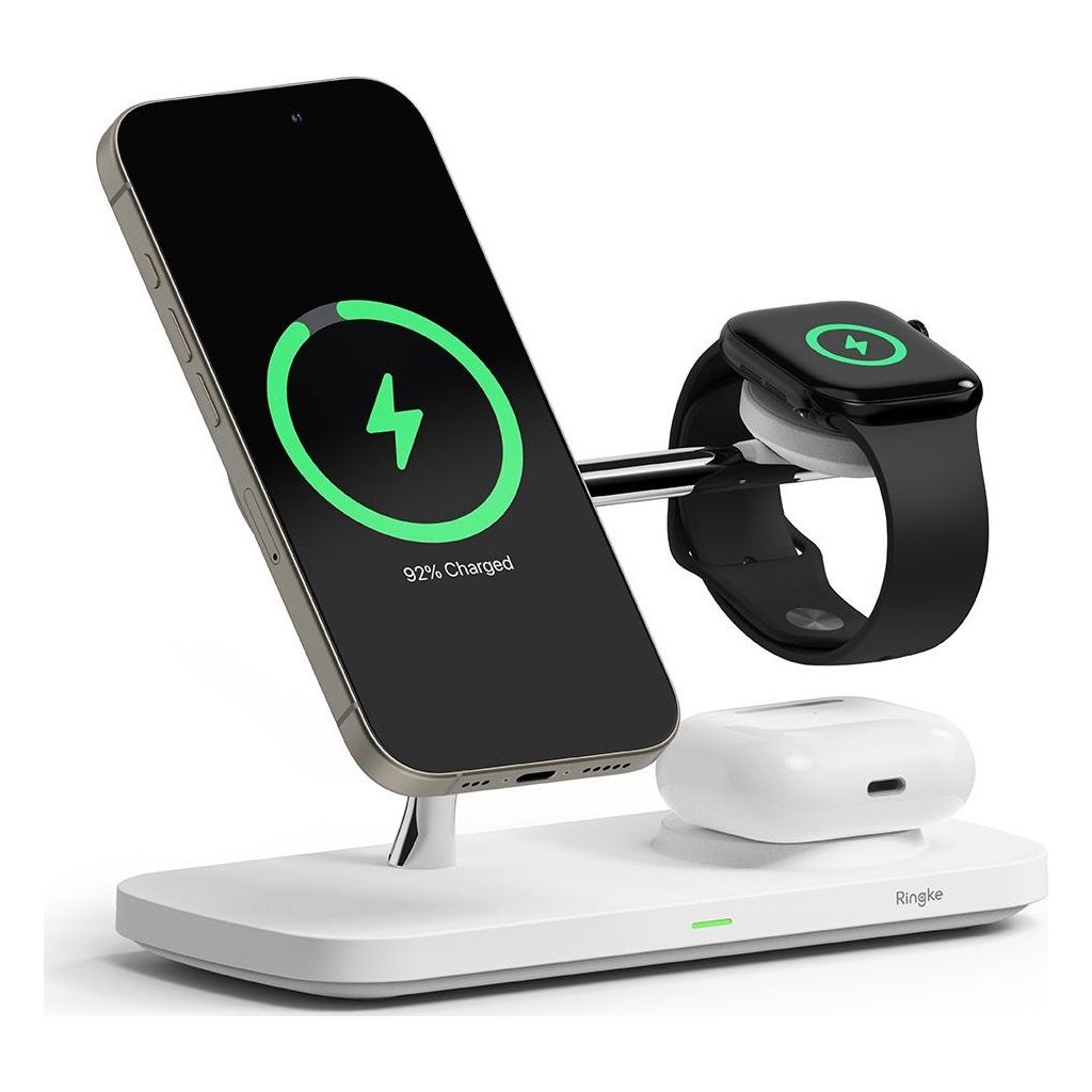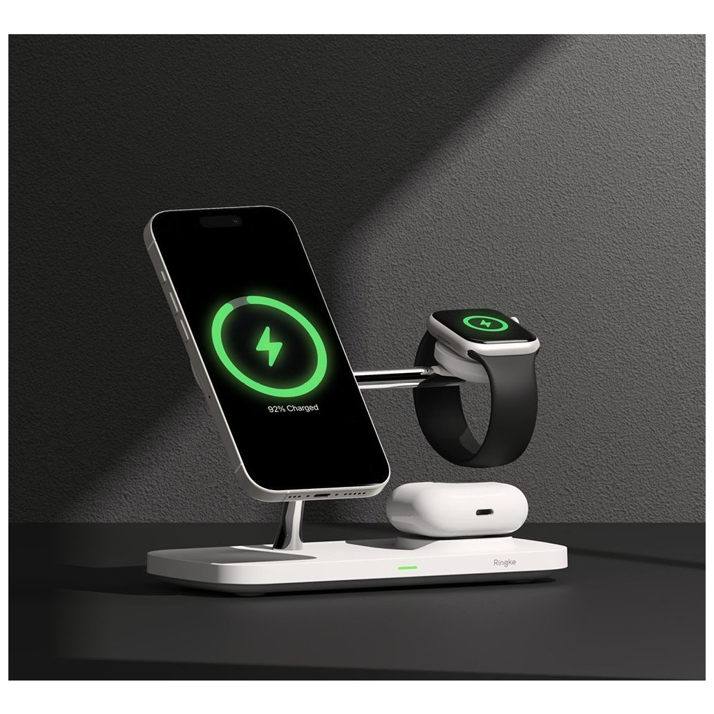 Bezdrátová rychlá nabíječka pro iPhone, AirPods a Apple Watch - Ringke, QI2 MagSafe Wireless Charger White
