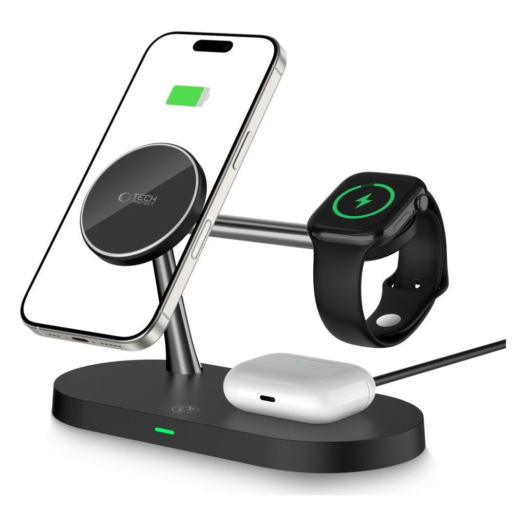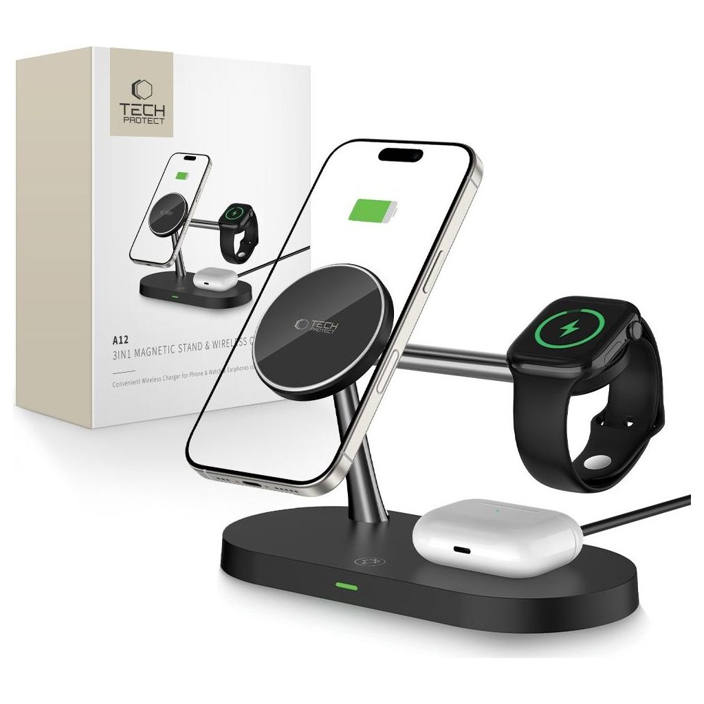 Bezdrátová rychlá nabíječka pro iPhone, AirPods a Apple Watch - Tech-Protect, A12 MagSafe Wireless Charger Black