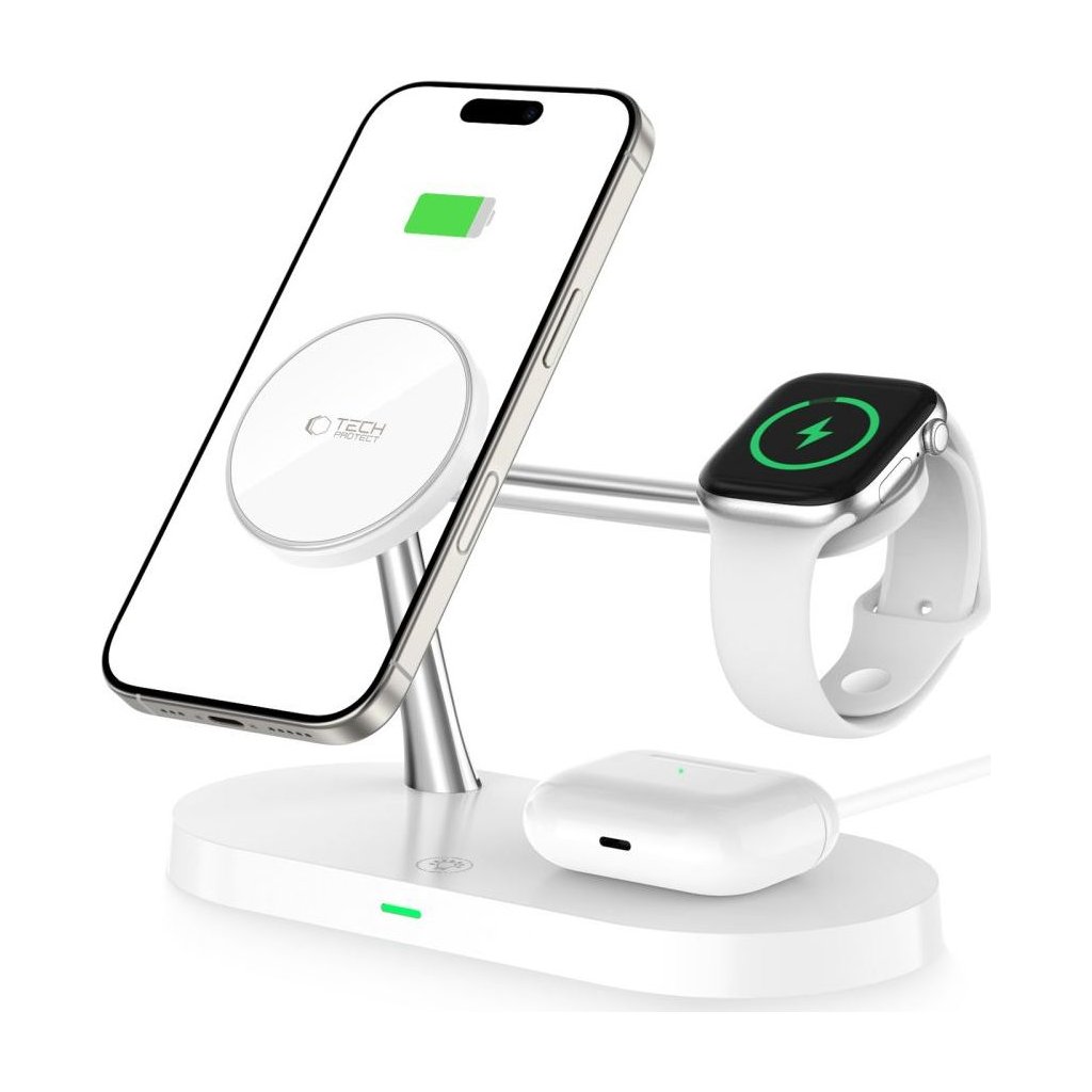Bezdrátová rychlá nabíječka pro iPhone, AirPods a Apple Watch - Tech-Protect, A12 MagSafe Wireless Charger White