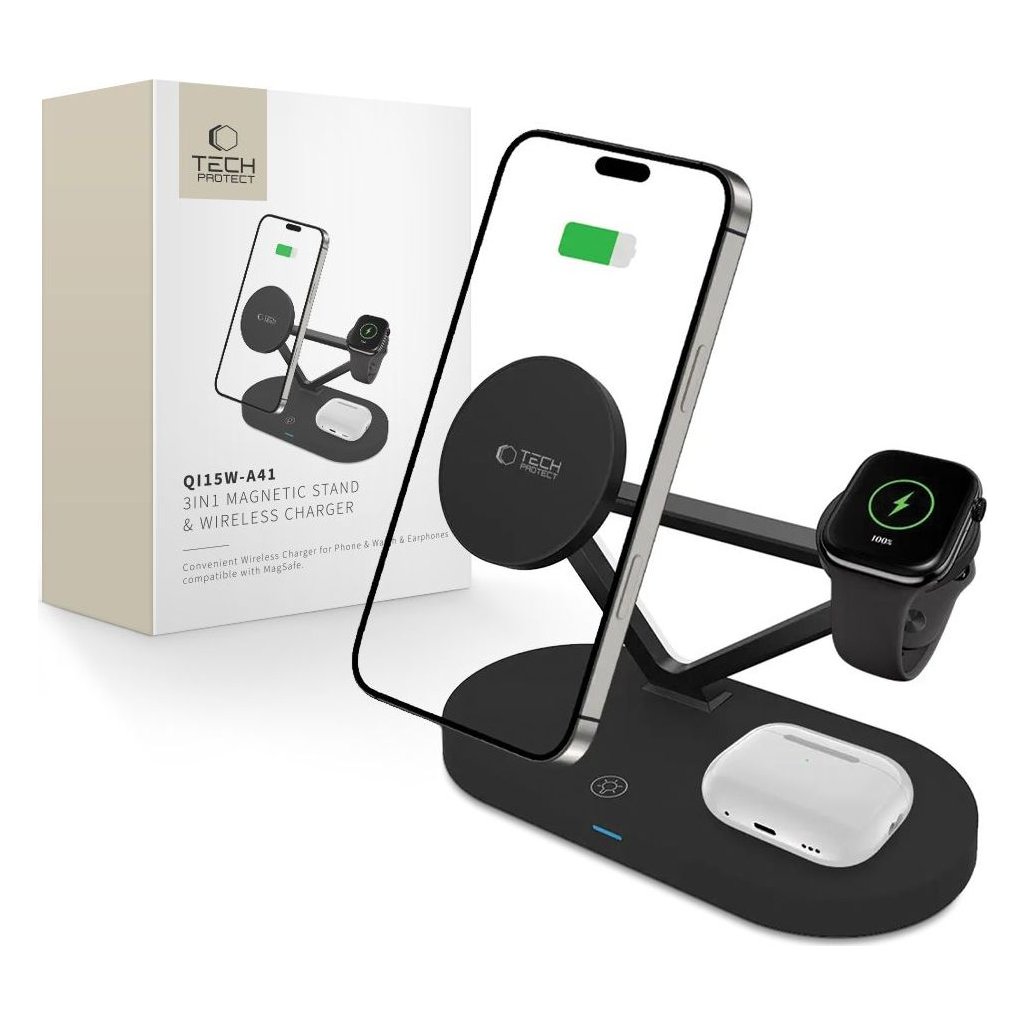 Bezdrátová rychlá nabíječka pro iPhone, AirPods a Apple Watch - Tech-Protect, QI15W-A41 MagSafe Wireless Charger Black