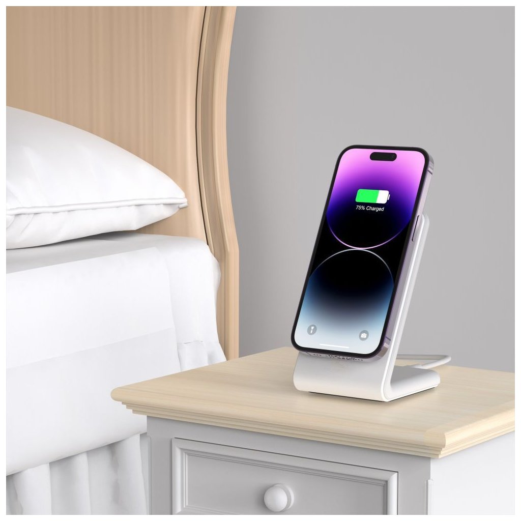 Minimalistický design s matným povrchem odolává otiskům prstů a dokonale ladí s každým interiérem. Protiskluzové prvky na spodní straně zajišťují stabilitu a bezpečnost při nabíjení.