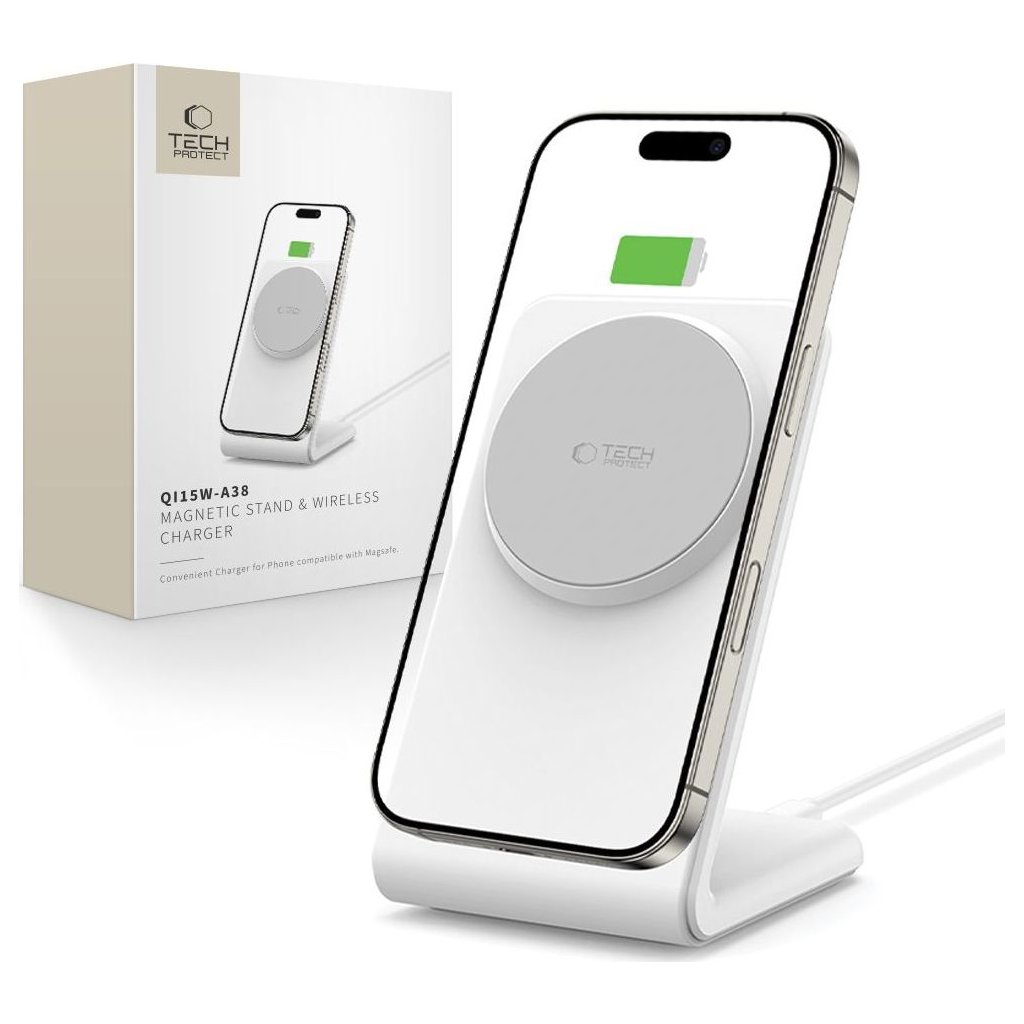 Bezdrátová rychlá nabíječka pro iPhone Tech-Protect QI15W-A38 je moderní a stylová. Navržena pro uživatele, kteří hledají spojení rychlého a bezpečného nabíjení s elegantním designem, tato nabíječka vám umožní nabíjet smartphony s podporou MagSafe i bezdrátová sluchátka.