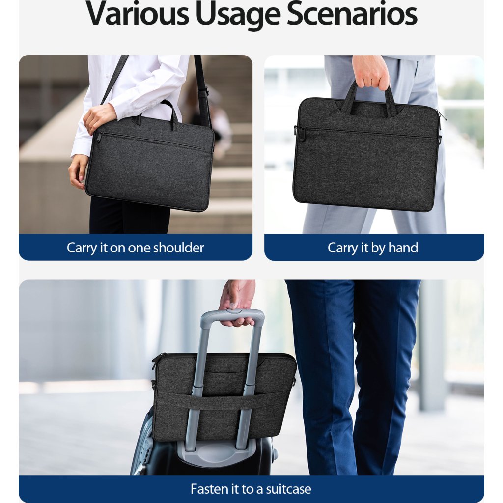 Taška pro notebook má na vrchu ucha pro pohodlné držení a přenášení. To se hodí pro menší cesty a krátké trasy. U delšího přesunu oceníte dlouhý popruh opatřený měkkou ploškou, kterou si nasadíte na rameno. Takto lze přenášet počítač i několik hodin denně.