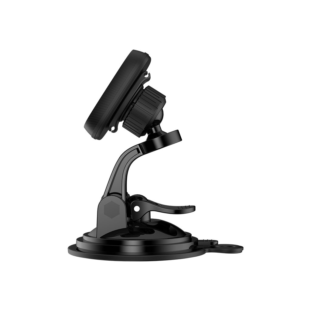 Magnetický držák na iPhone do auta, firmy HOCO, černé barvy. S pomocí tohoto držáku se dá pohodlně používát navigace v autě, telefon pevně drží za pomocí silného magnetu a nevypadáva. Zachycuje se na čelním skle. Váha: 110g.