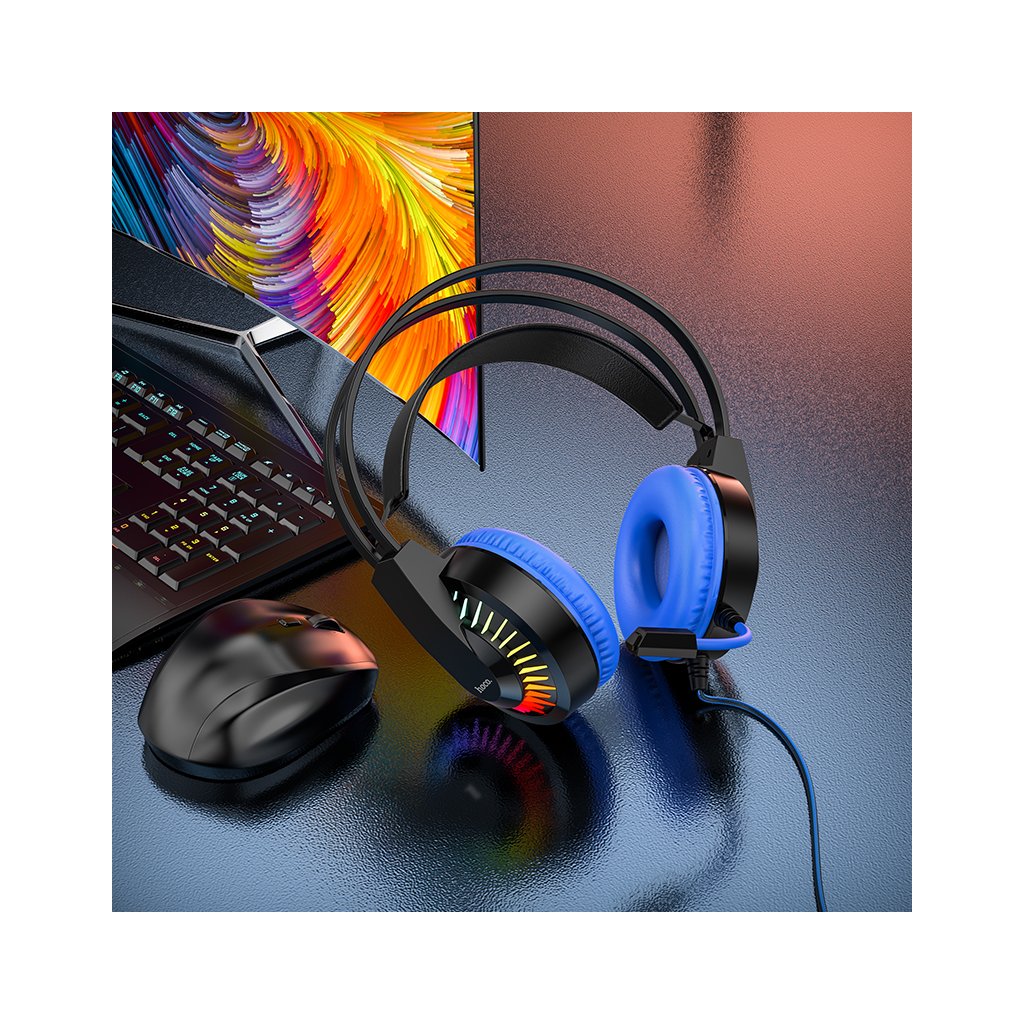 Herní sluchátka s mikrofonem - Hoco, W105 Joyful Blue