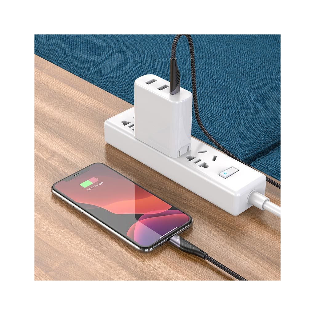 Odolný nabíjecí kabel Hoco je uvnitř tvořen měděnými vodiči. Těch je dokonce 178 a každý obsahuje 5 jader. Díky tomu déle vydrží a nemusíte se bát, že po pár použití přestane fungovat. Koncovky kabelu jsou vyztužené hliníkem a nylonem opletený vnějšek kabelu zajistí dostatečnou pružnost.