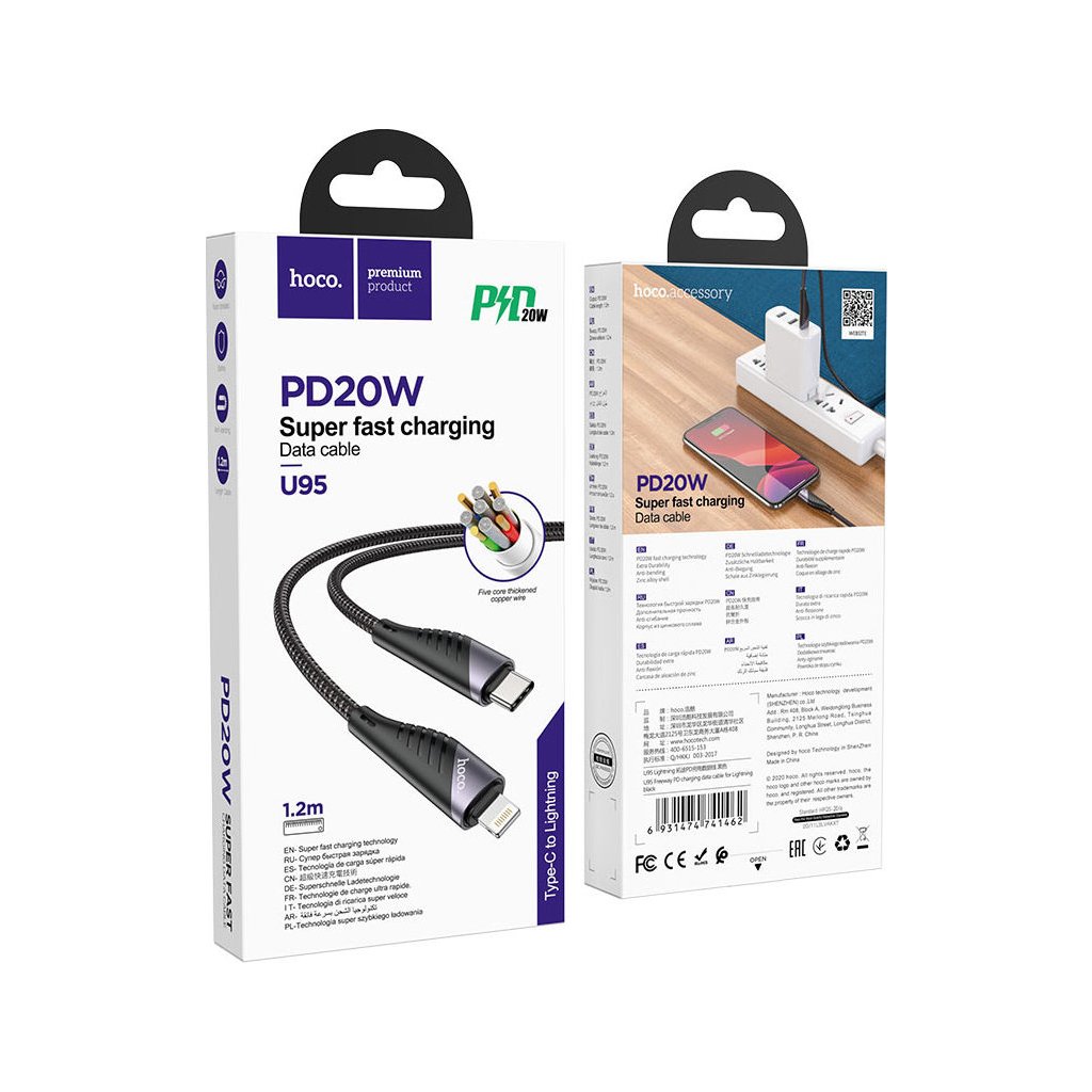 Rychlý datový kabel USB-C/Lightning Hoco U95 je skvělým řešením pro nabíjení a přenos dat z iPhonu nebo iPadu. Kabel podporuje nabíjecí výkon až 20 W, má měděné vodiče a vnější opletení z tkaného nylonu.