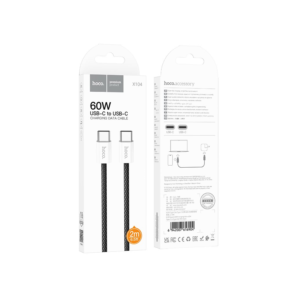 Kabel USB-C to USB-C - Hoco, X104 Source 60W/3A 200cm Black