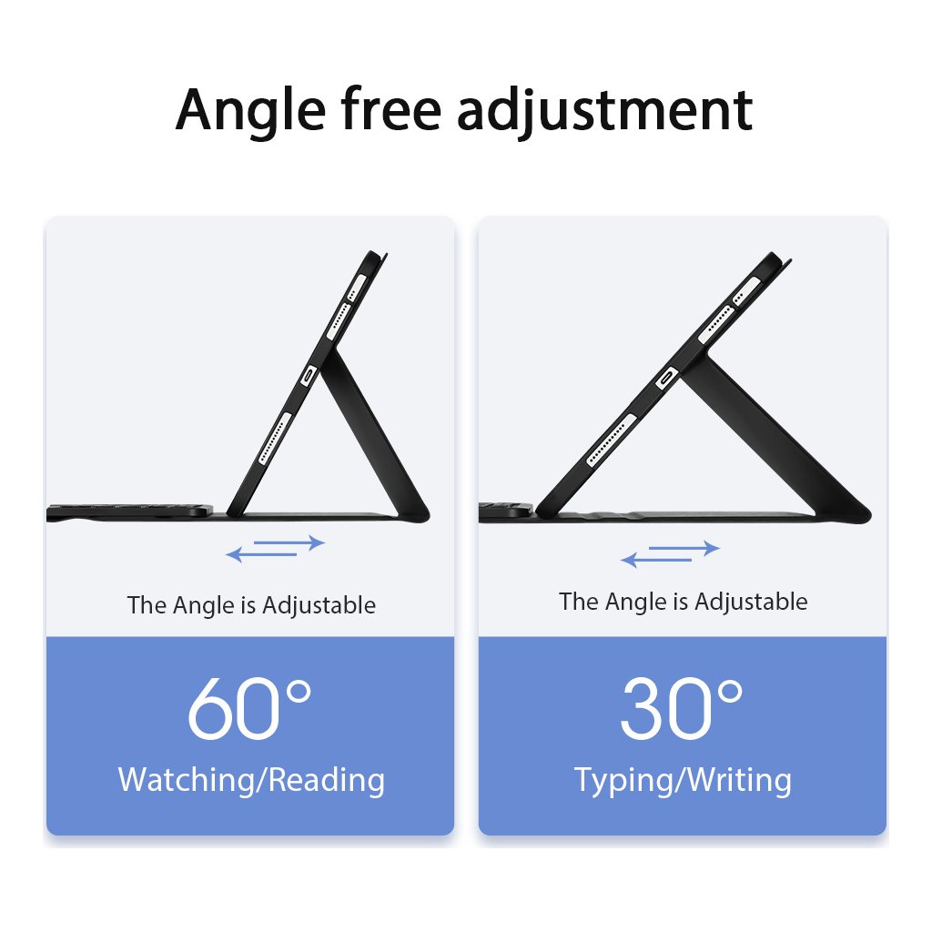 Bezdrátová klávesnice na iPad se spáruje s tabletem pomocí Bluetooth a každé propojení trvá jen pár sekund, nebudete tak na nic čekat. Integrovaná baterie udrží klávesnici kolem 30 dní v nepřetržitém chodu. Nabití pak probíhá přes USB-C kabel, který dostanete s klávesnicí v balení.