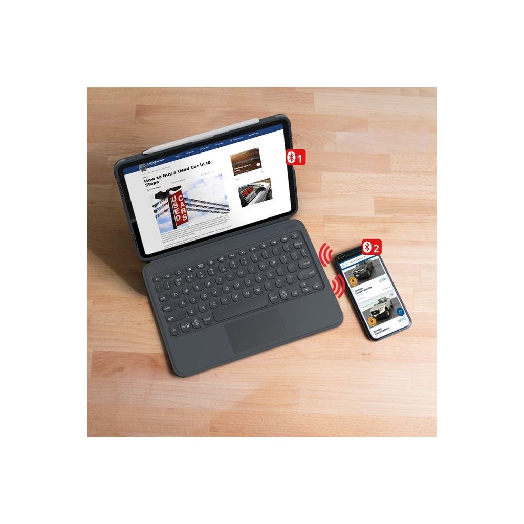 Bezdrátová Bluetooth klávesnice s trackpadem, odnímatelným krytem a podsvícenými klávesami, která vaše zařízení ochrání při pádech z výšky až dvou metrů.