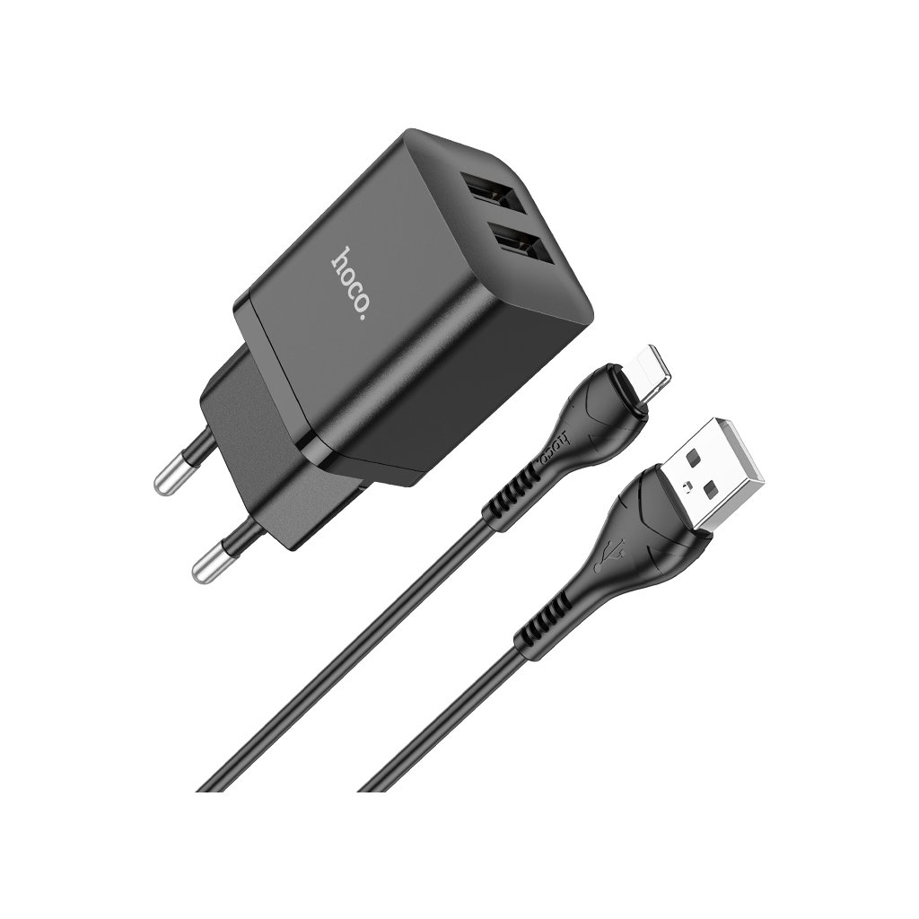 Nabíjecí USB adaptér do sítě - Hoco, N25 Maker Black + Lightning kabel