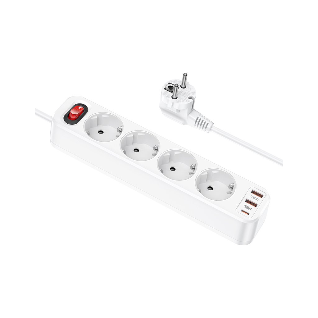 Chytrá zásuvka od společnosti Hoco čítá hned čtveřici zásuvek, které jsou pod neustálým dohledem. Pokud se v kterékoliv objeví nějaká neobvyklost, okamžitě se automaticky odpojí a ochrání připojené zařízení. Celá zásuvka je navíc vyrobena z materiálů, které zpomalují hoření, takže v případě požáru ho nebude dále šířit.