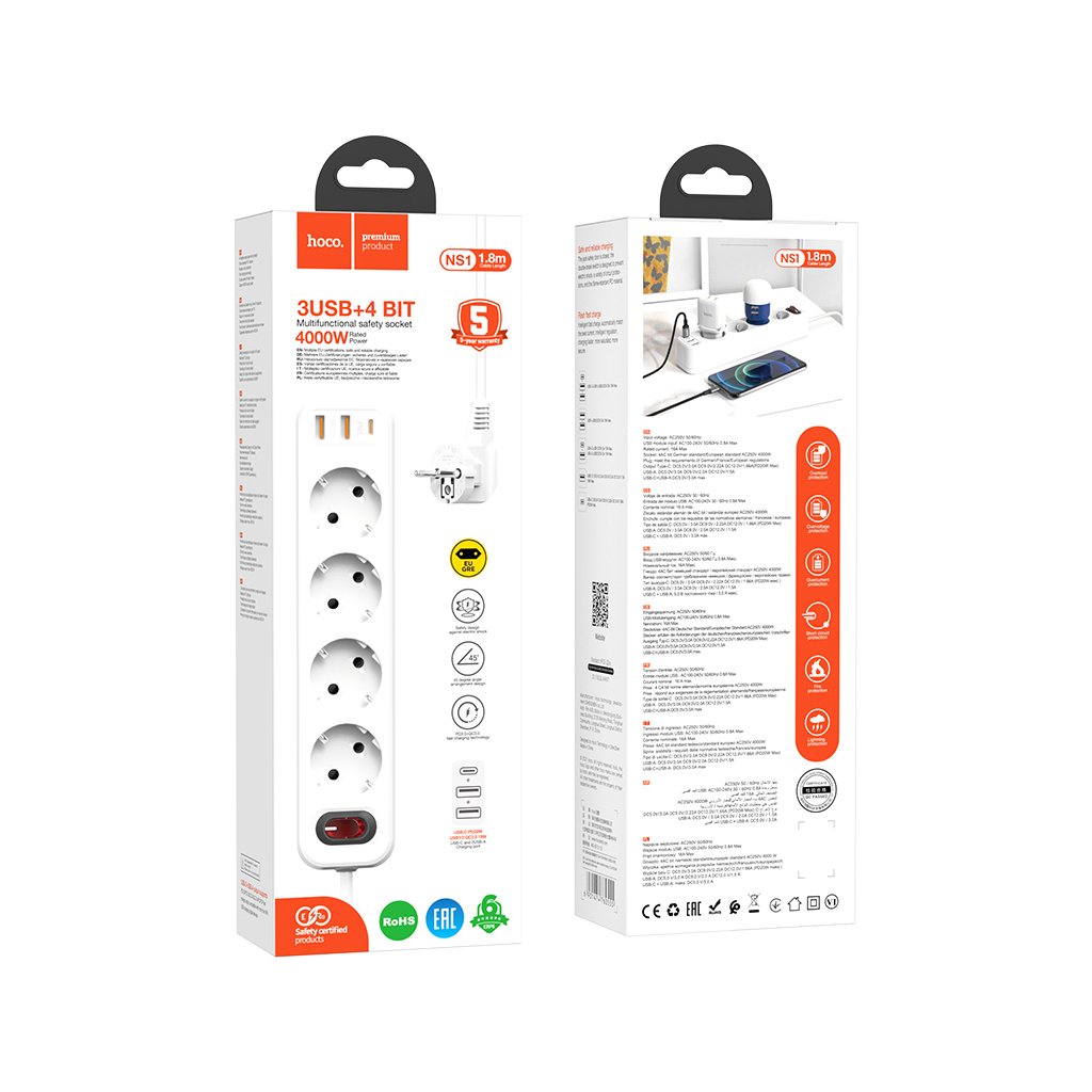 Přepěťová ochrana Hoco NS1 slouží jako spojka mezi elektrickou zásuvkou a koncovým zařízením a pokud detekuje nadměrné nebo neobvyklé napětí, automaticky odpojí všechna připojená zařízení.