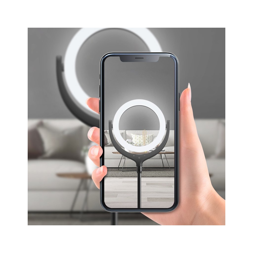 Kruhové ring light LED světlo Devia Desktop Live Streaming 12“ je výborným pomocníkem pro osvětlení vašich videí a poskytne rovnoměrné nasvícení obličeje i dalších objektů. Obsahuje stativ a držák na telefon.