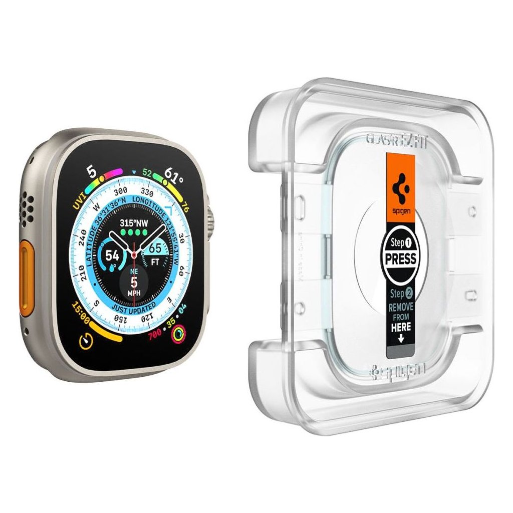 Ochranné tvrzené sklo pro Apple Watch 49mm - Spigen, Glas.tR EZ Fit (2ks s aplikátorem)