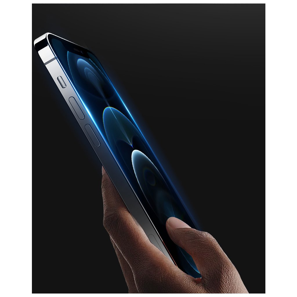 Ochranné tvrzené sklo pro iPhone 12 Pro MAX, chrání celý displej od kraje ke kraji.