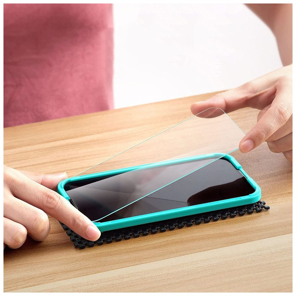 Nalepení tvrzeného skla na telefon provedete velmi jednoduše. V balení naleznete instalátor, kterým je plastový rámeček. Ten nasadíte na přední část telefonu a tvrzené sklo do něj přesně zapadne. Nemusíte tak dlouho vyměřovat správnou pozici a stresovat se, že nalepíte sklo špatně.