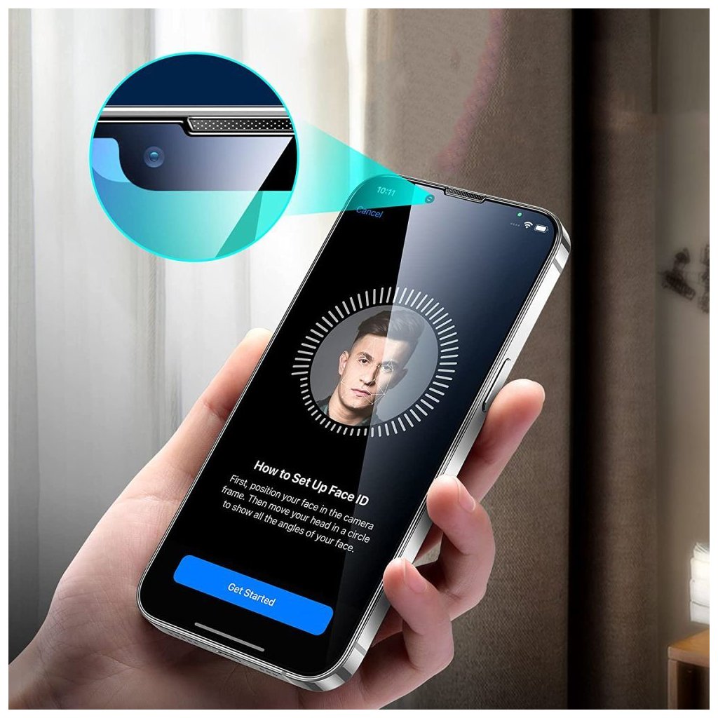 Ochranné sklo na iPhone je přesně vyhotoveno pro nasazení na Apple telefony. Nijak nekoliduje s Face ID kamerou, která zůstane schopna snímat vaši tvář. Ochranné sklo je plně kompatibilní s většinou ochranných krytů.