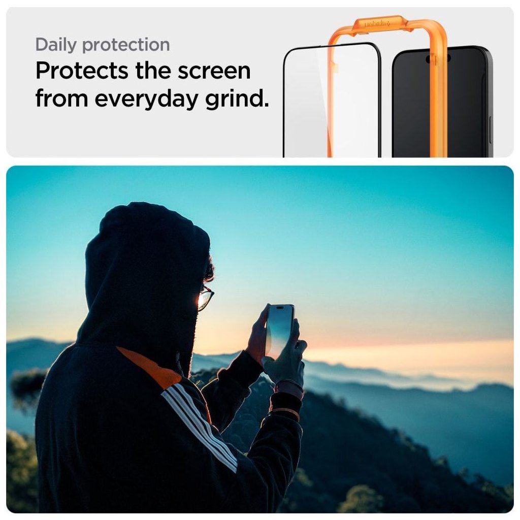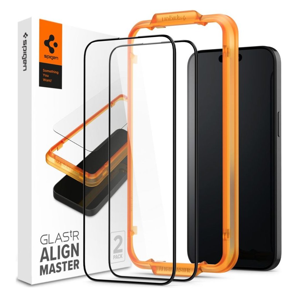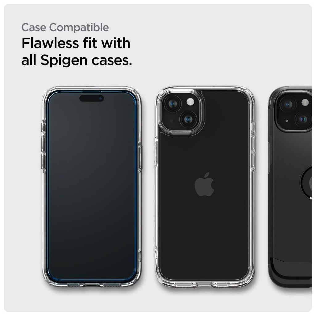 Ochranné tvrzené sklo na iPhone 15 PLUS - Spigen, AlignMaster FC (2ks s aplikátorem)