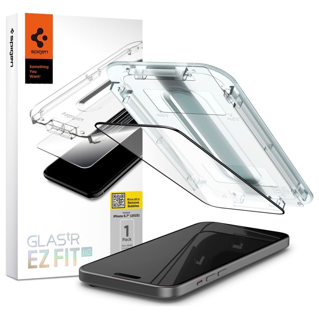 Ochranné tvrzené sklo na iPhone 15 PLUS - Spigen, Glas.tR EZ Fit (1ks s aplikátorem)