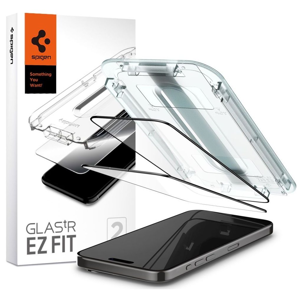 Ochranné tvrzené sklo na iPhone 15 Pro - Spigen, Glas.tR EZ Fit (2ks s aplikátorem)