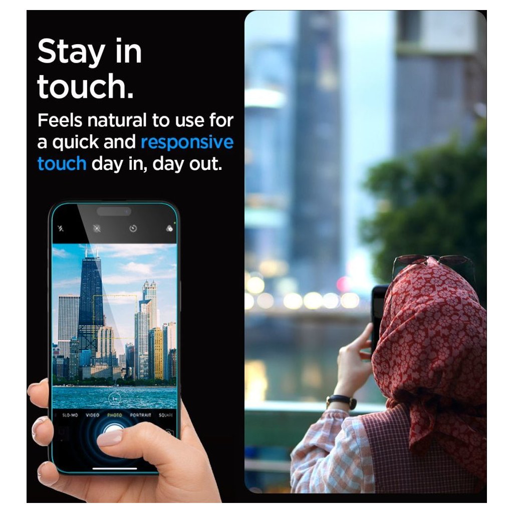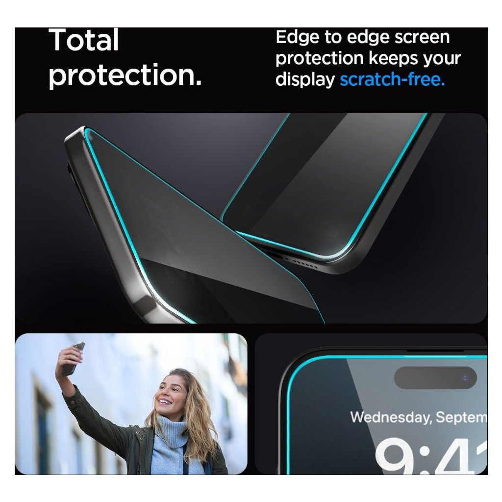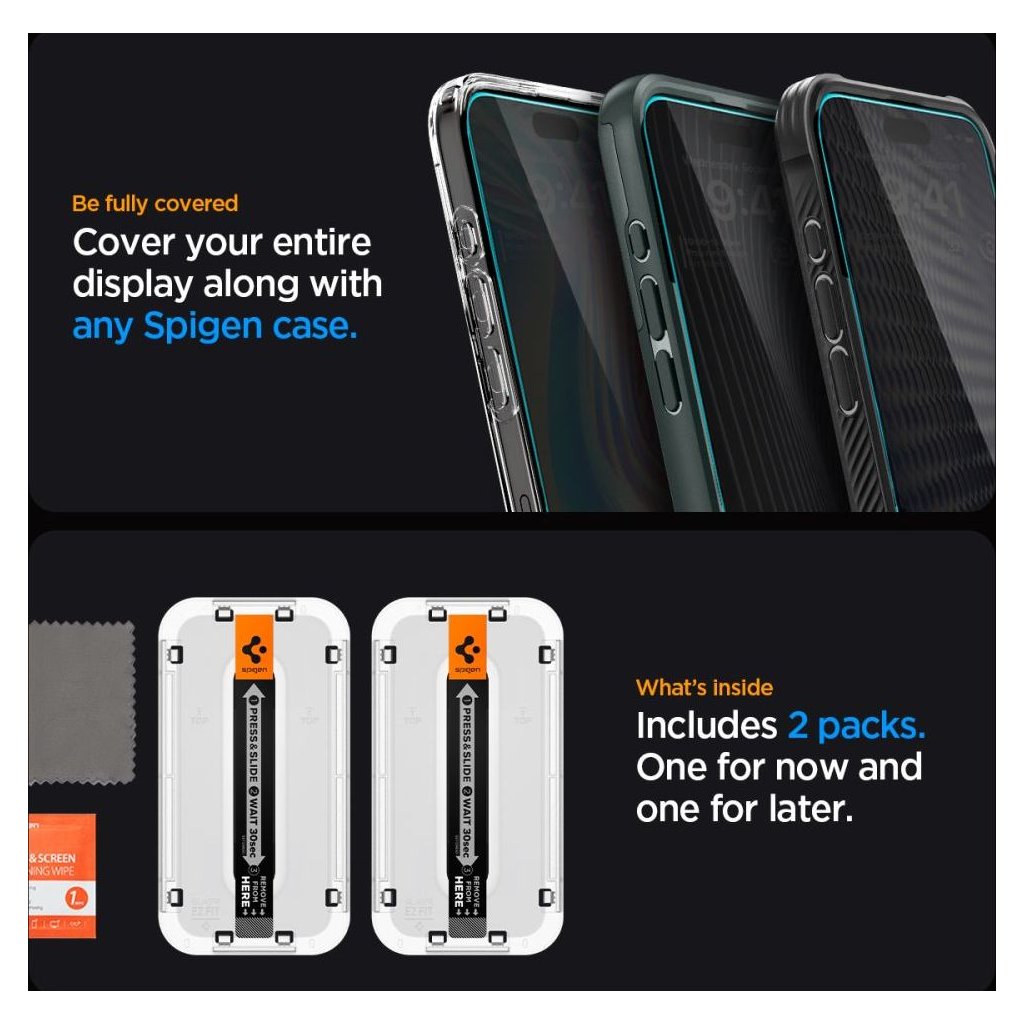Ochranné tvrzené sklo na iPhone 15 Pro - Spigen, Glas.tR EZ Fit Privacy (1ks s aplikátorem)