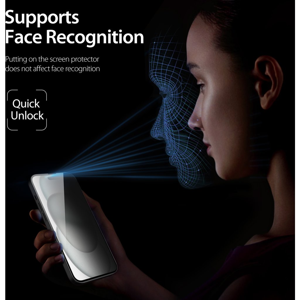 Ochranné sklo na iPhone je obdařeno šikovnou vychytávkou v podobě Privacy ochrany. Ta funguje ve všech směrech a abyste viděli na displej, je potřeba se na telefon dívat zpříma. Jakmile se někdo bude dívat ze strany nebo třeba shora, uvidí jen černou obrazovku.