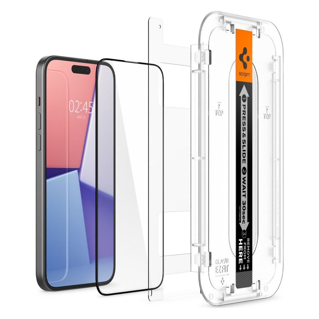 Ochranné tvrzené sklo na iPhone 15 - Spigen, Glas.tR EZ Fit (1ks s aplikátorem)