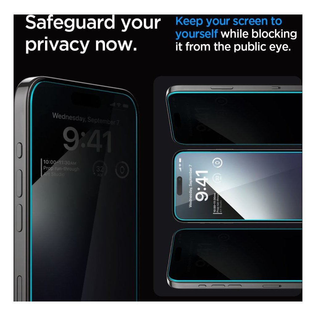 Ochranné tvrzené sklo na iPhone 15 PLUS / 16 PLUS - Spigen, Glas.tR EZ Fit Privacy (1ks s aplikátorem)