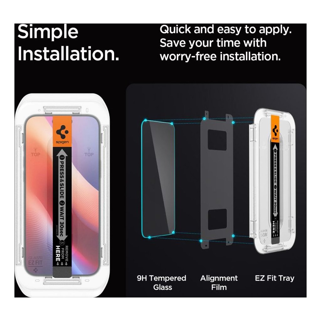 Ochranné tvrzené sklo na iPhone 17 Pro MAX / 16 Pro MAX - Spigen, Glas.tR EZ Fit (2ks s aplikátorem)
