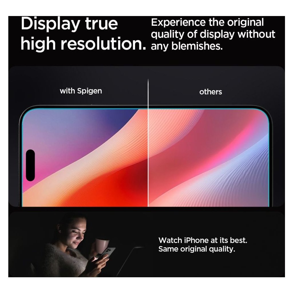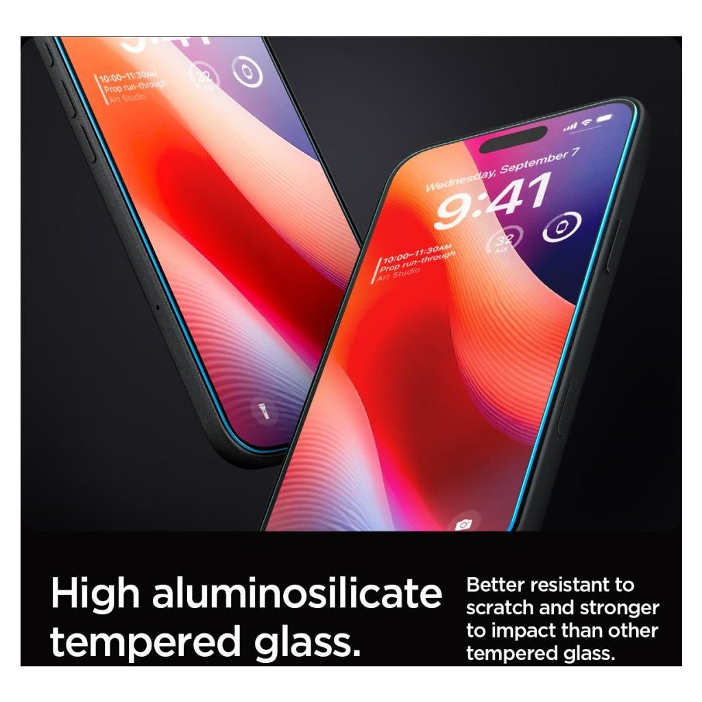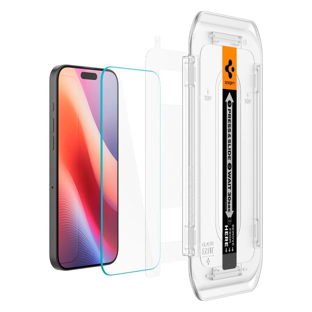 Ochranné tvrzené sklo na iPhone 16 Pro / 17 / 17 Pro - Spigen, Glas.tR EZ Fit (1ks s aplikátorem)