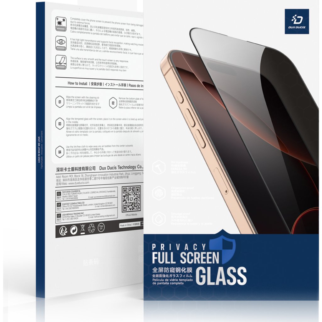 Ochranné tvrzené sklo na iPhone 17 Pro - DuxDucis, Full Glass Privacy