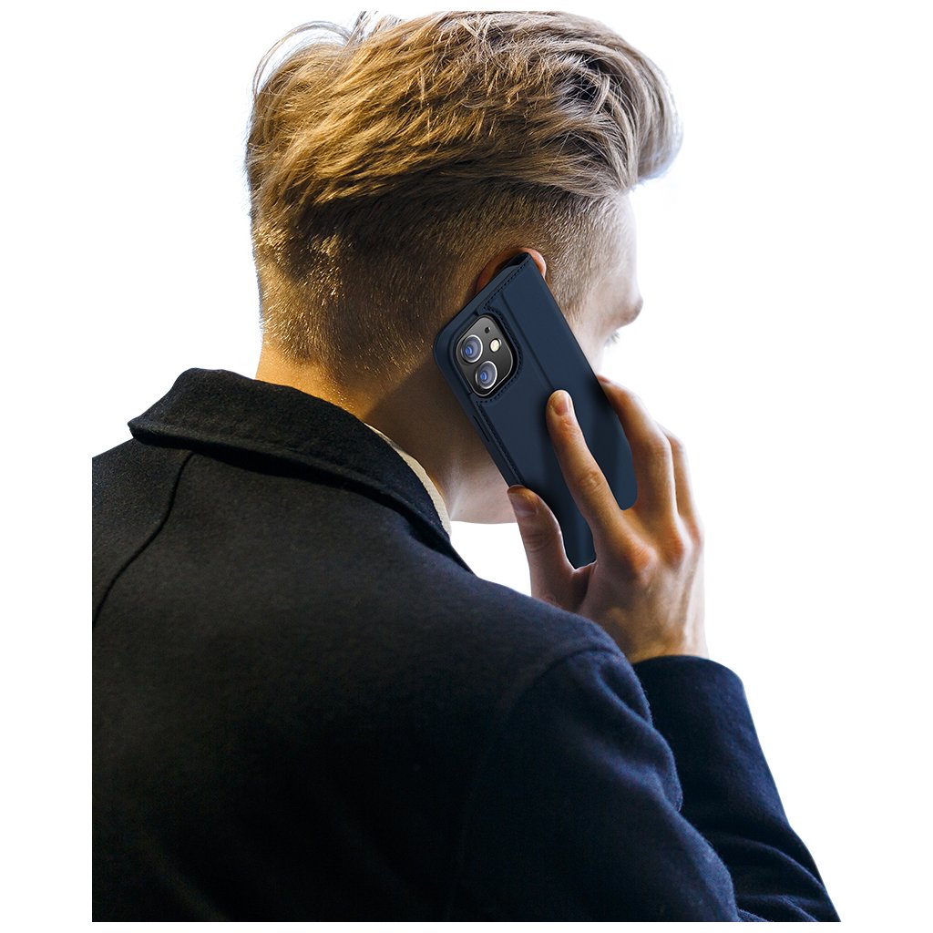 Elegantní pouzdro pro iPhone 12 / 12 Pro s magnetickým zavíráním, které je vyrobeno z vysoce kvalitní syntetické PU kůže se zesíleným šitím, které zaručuje vyšší odolnost. Pečlivě navržené a vyrobené s důrazem na přesnost. Knížkové pouzdro DUX DUCIS nabízí výbornou ochranu před náhodným vyklouznutím, poškrábáním a menším poškozením. Uvnitř pouzdra je malá samostatná kapsa, která je ideální pro ukládání kreditní karty nebo peněz.