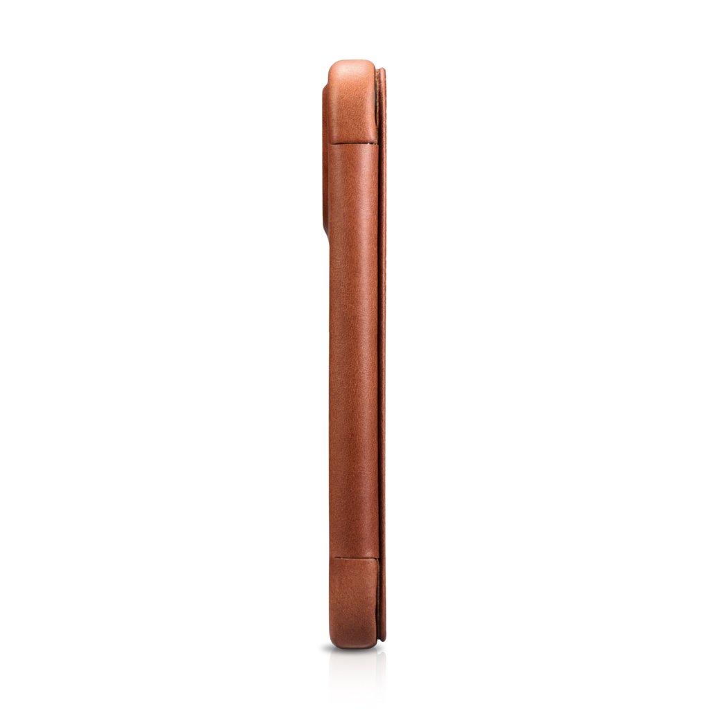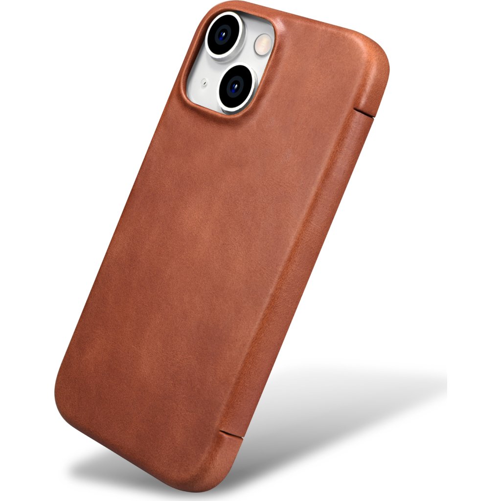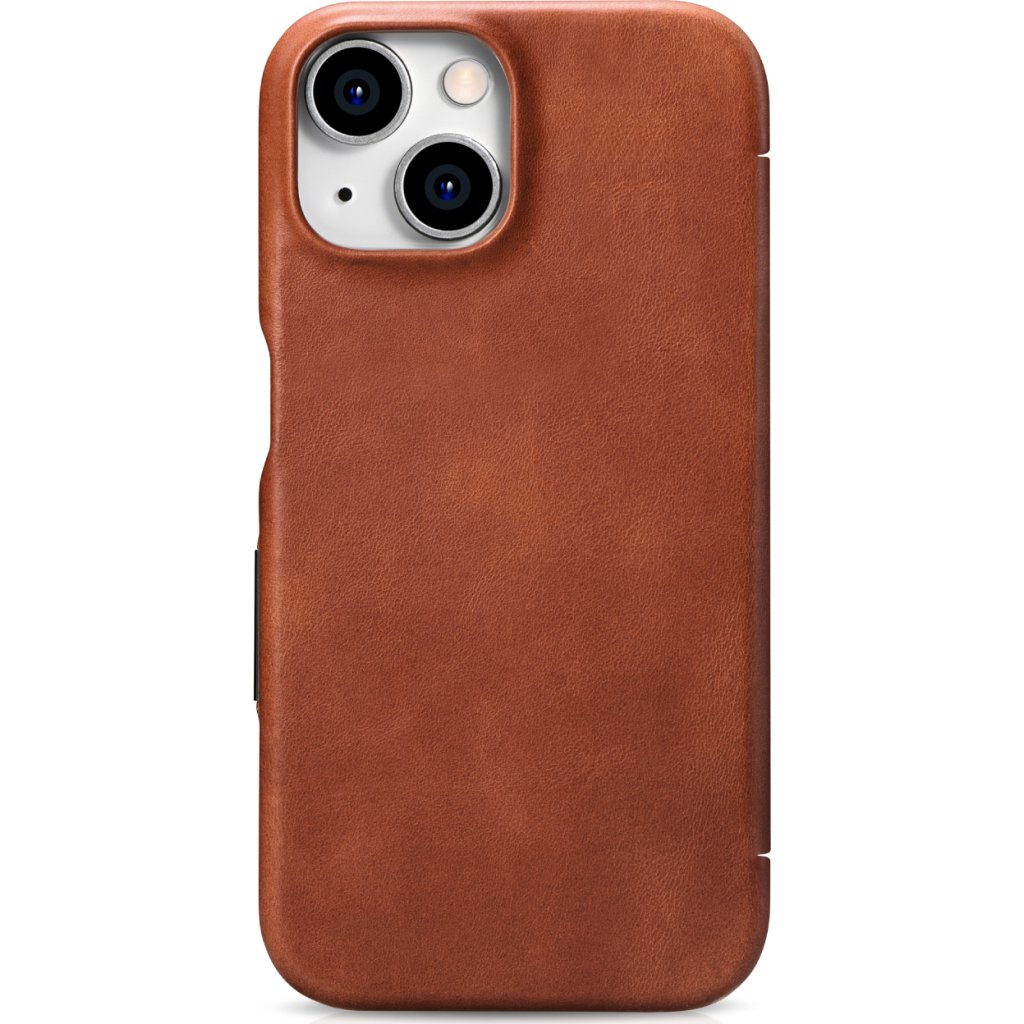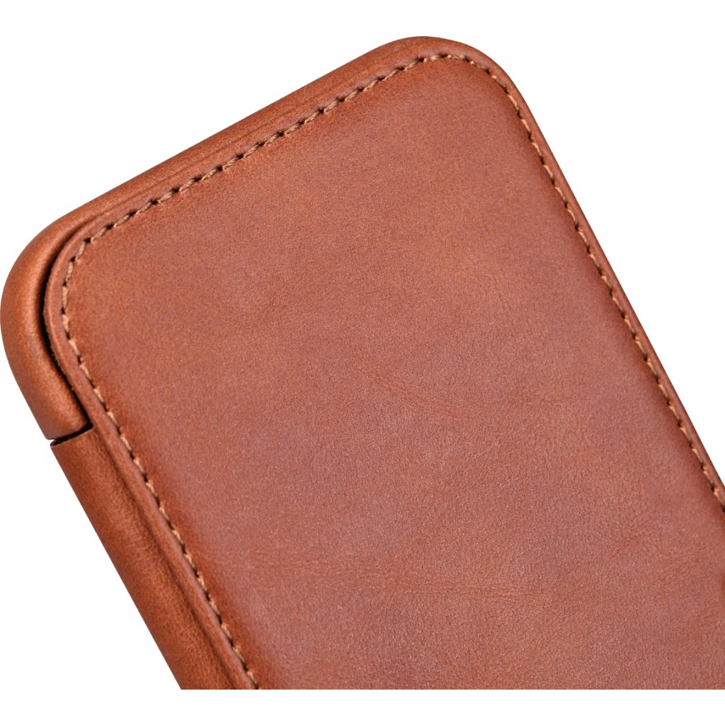Knížkové pouzdro na iPhone 15 - iCarer, Oil Wax Real Leather MagSafe Brown