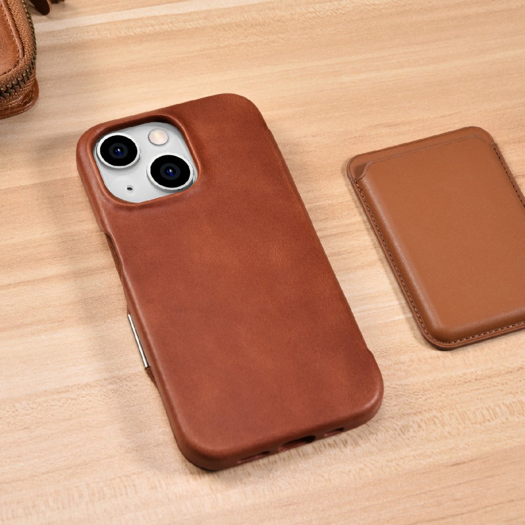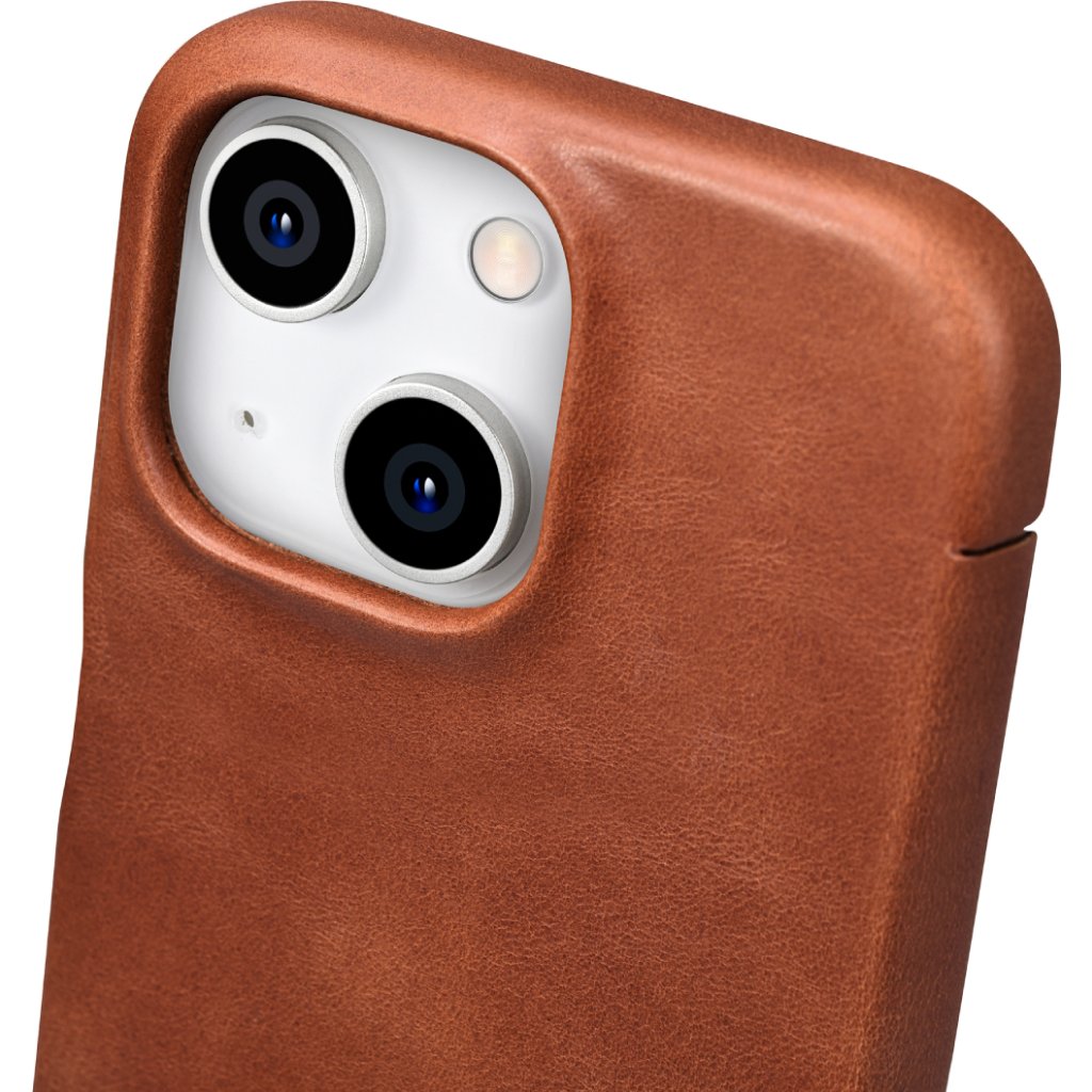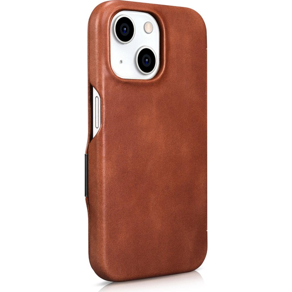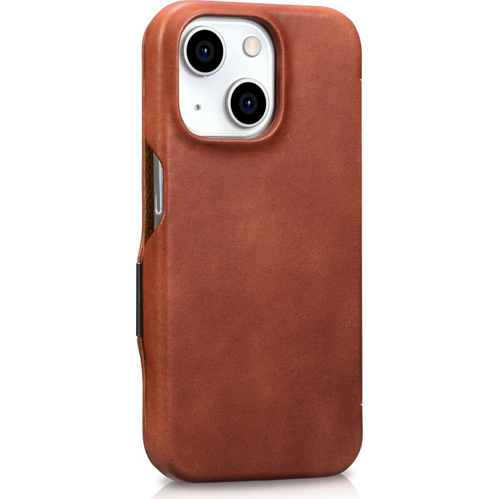 Knížkové pouzdro na iPhone 15 - iCarer, Oil Wax Real Leather MagSafe Brown