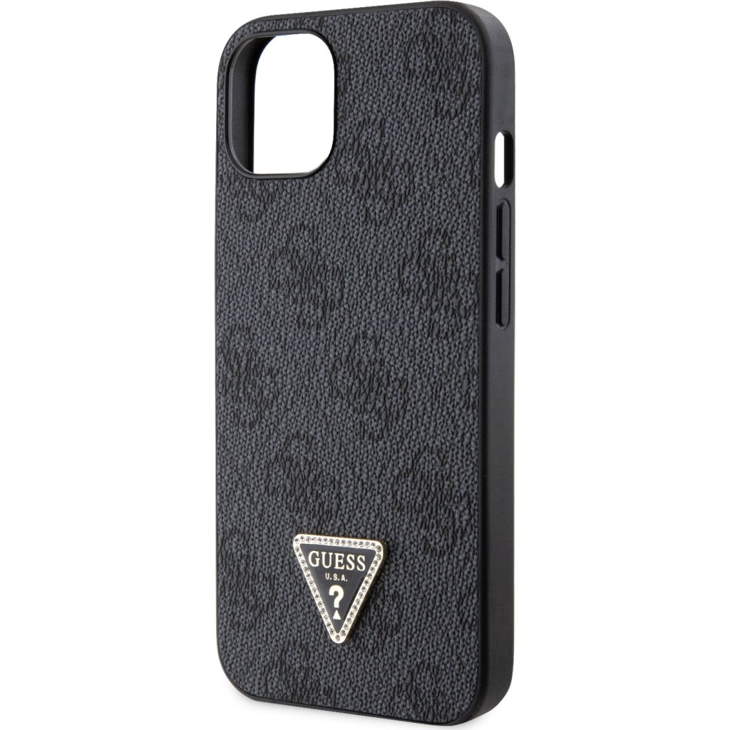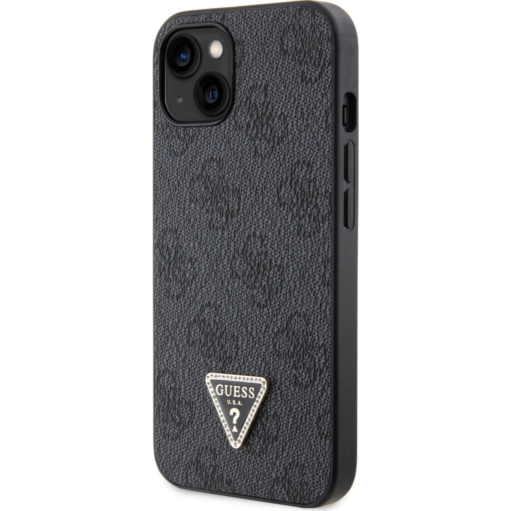Ochranný kryt na iPhone 15 - Guess, 4G Strass Triangle Metal Logo Black