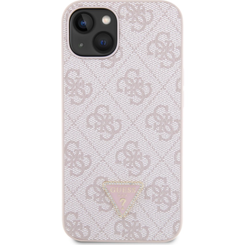 Ochranný kryt na iPhone 15 - Guess, 4G Strass Triangle Metal Logo Pink