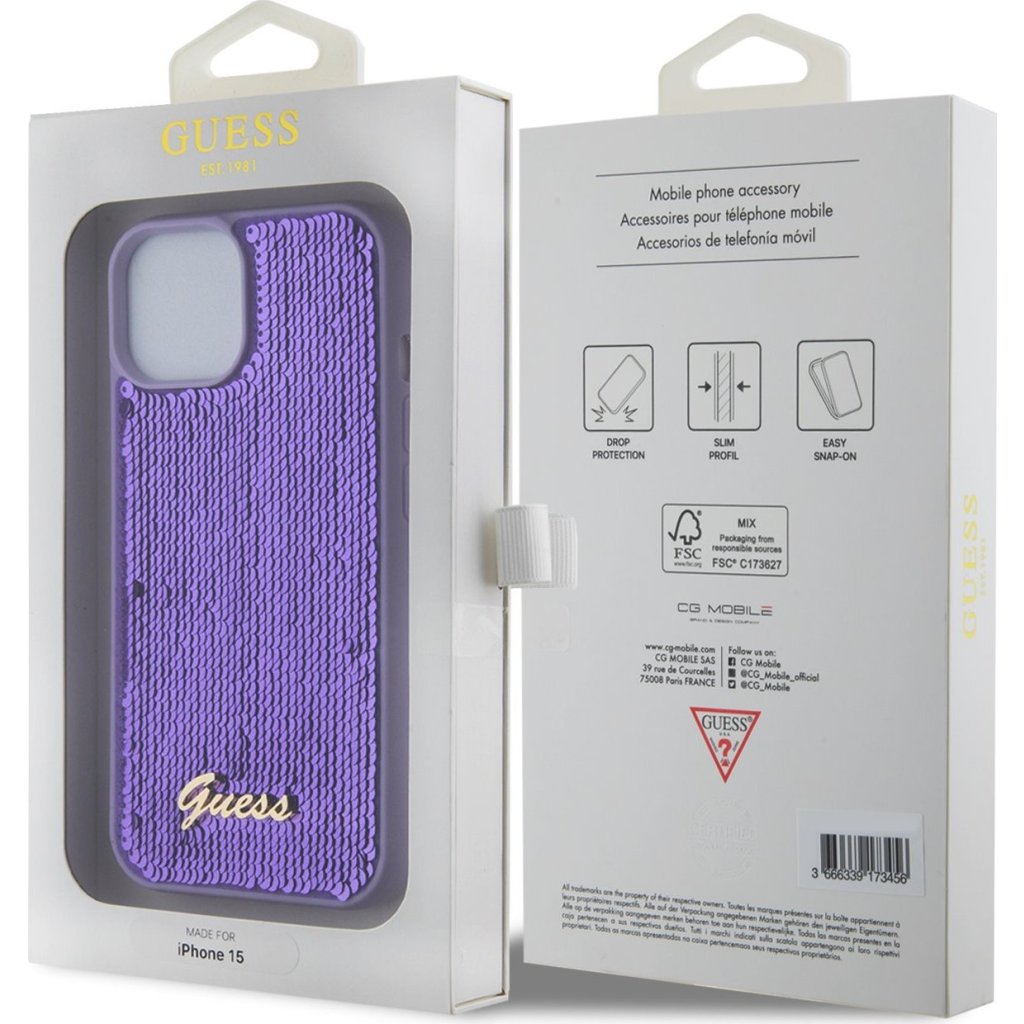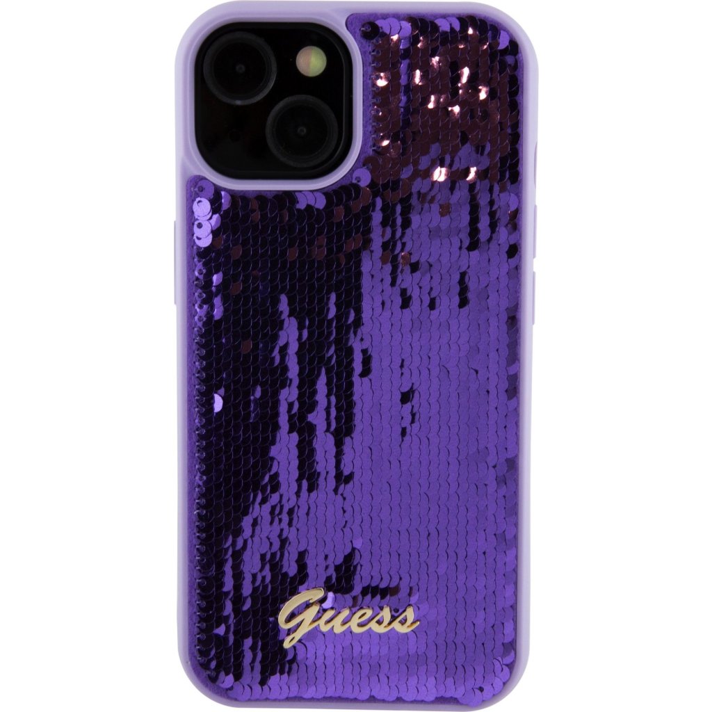 Ochranný kryt na iPhone 15 - Guess, Sequin Script Logo Purple