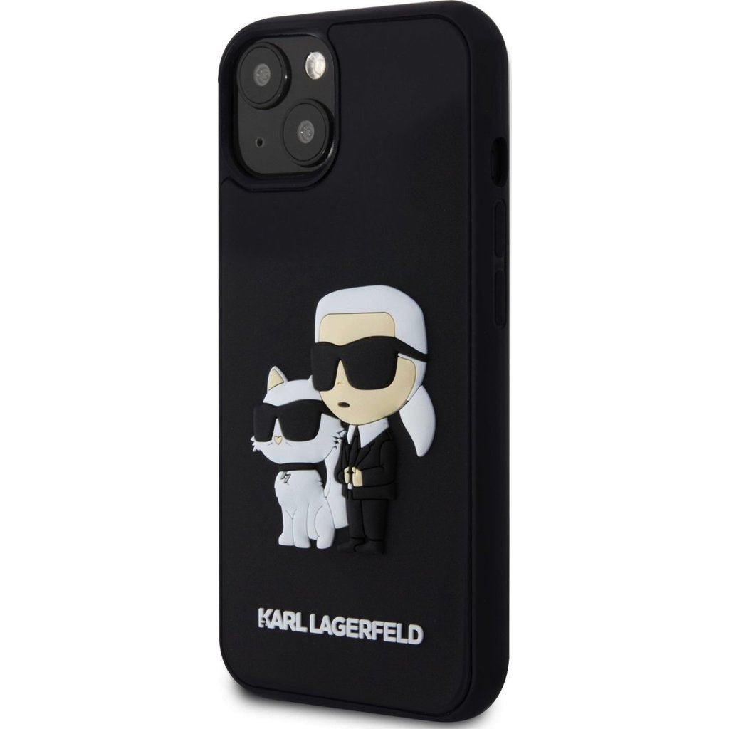 Ochranný kryt na iPhone 15 - Karl Lagerfeld, 3D Rubber Karl and Choupette Black
