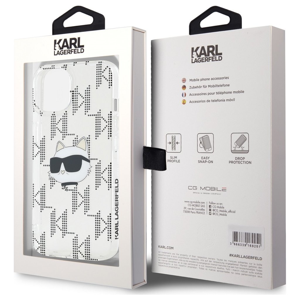 Ochranný kryt na iPhone 15 - Karl Lagerfeld, IML Electroplated Choupette Head Transparent