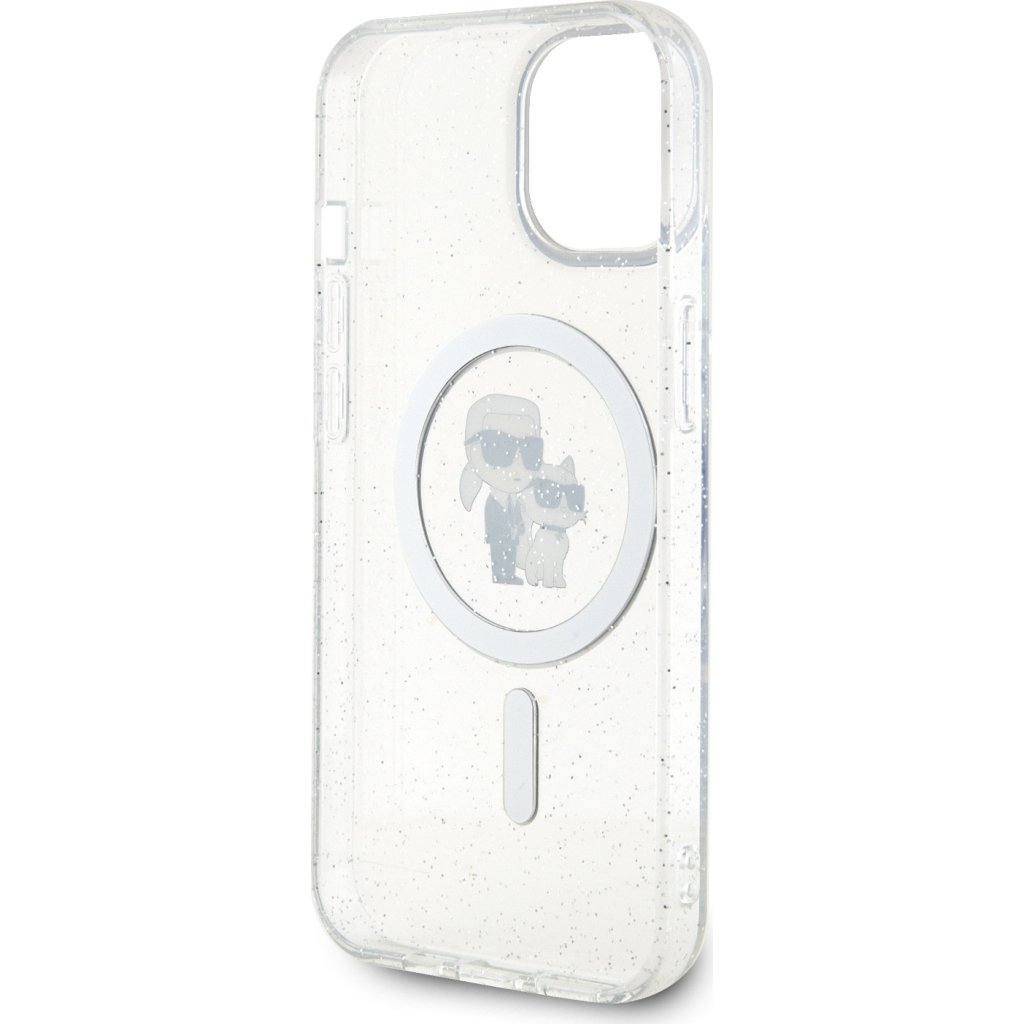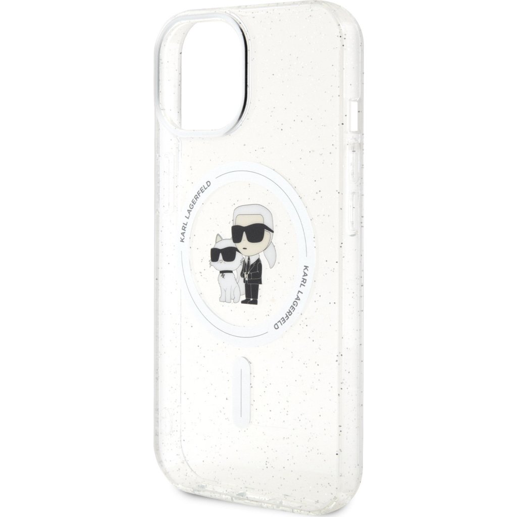 Ochranný kryt na iPhone 15 - Karl Lagerfeld, IML Glitter Karl and Choupette MagSafe Transparent